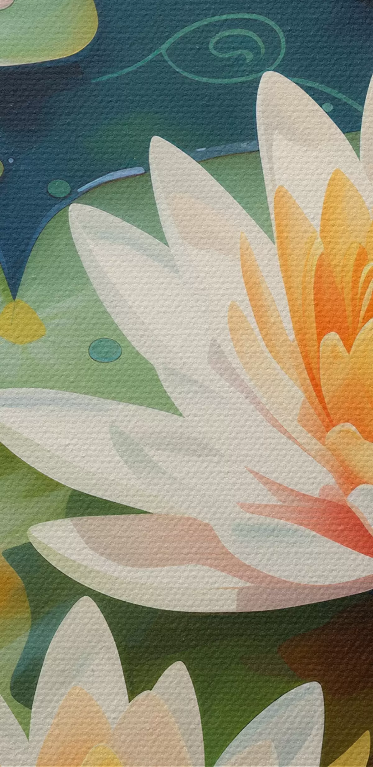 Er zijn drie soorten materiaal te bestellen: Economic Canvas - een dicht en duurzaam materiaal voor digitaal printen, identiek aan schildersdoek, waterdicht oppervlak, realistische weergave van details, materiaal met gemiddelde korrel. Premium Canvas - de textuur lijkt op die van schildersdoek (verweven kleine draden). Zachte, gedetailleerde reproductie van de afbeelding op een mat oppervlak. Eco-Premium - hoogwaardige 100% katoenen stof. Dankzij de natuurlijke katoenvezels is het materiaal duurzaam en slijtvast. Uitstekende kleurweergave en detail.