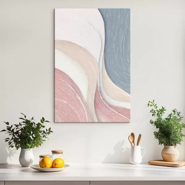 Schilderij Lichte abstracte golven in lichtroze en grijs-witte tinten Art. s46153