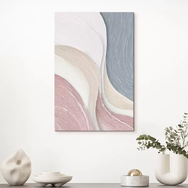 Schilderij Lichte abstracte golven in lichtroze en grijs-witte tinten Art. s46153