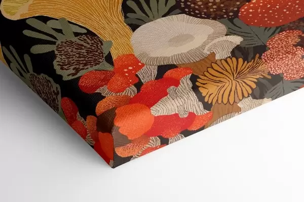 Schilderij Samenstelling van verschillende bospaddestoelen in warme tinten Art. s46170