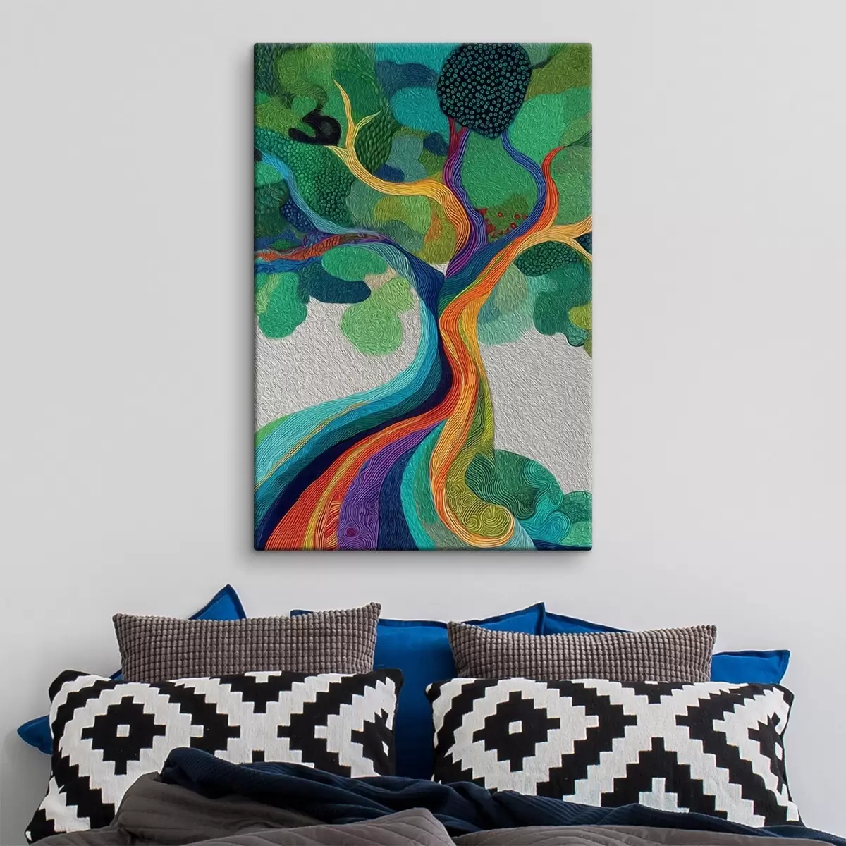 Schilderij Boom met regenboogtakken op een groene achtergrond Art. s46173