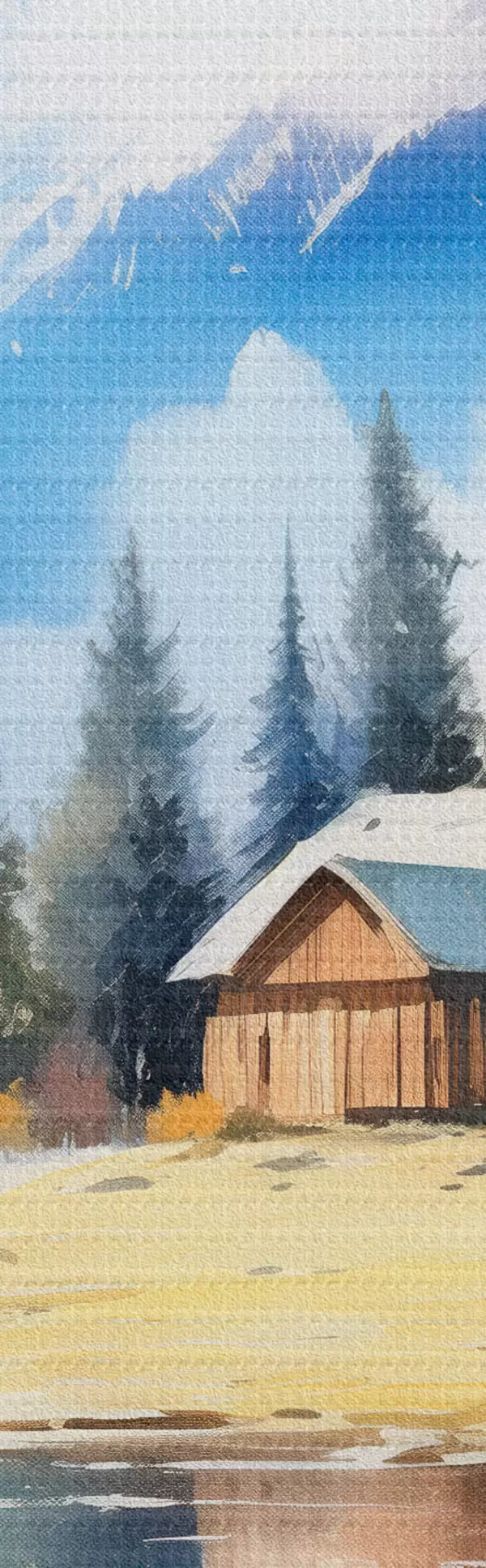 Schilderij Herfstlandschap aan het meer met een huis en bergen Art. s46184