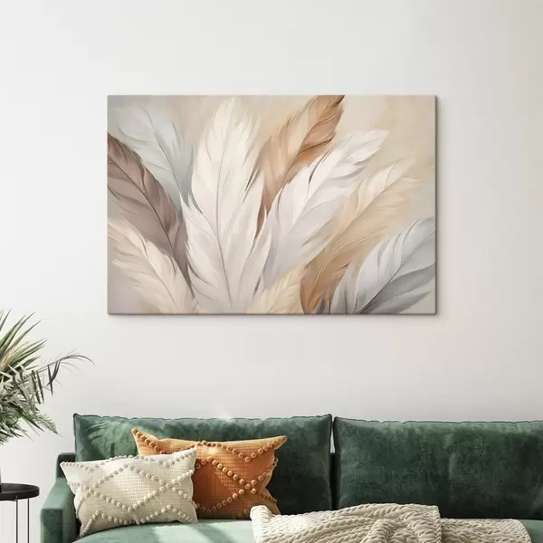 Schilderijen Zachte veren in beige en grijstinten s46190