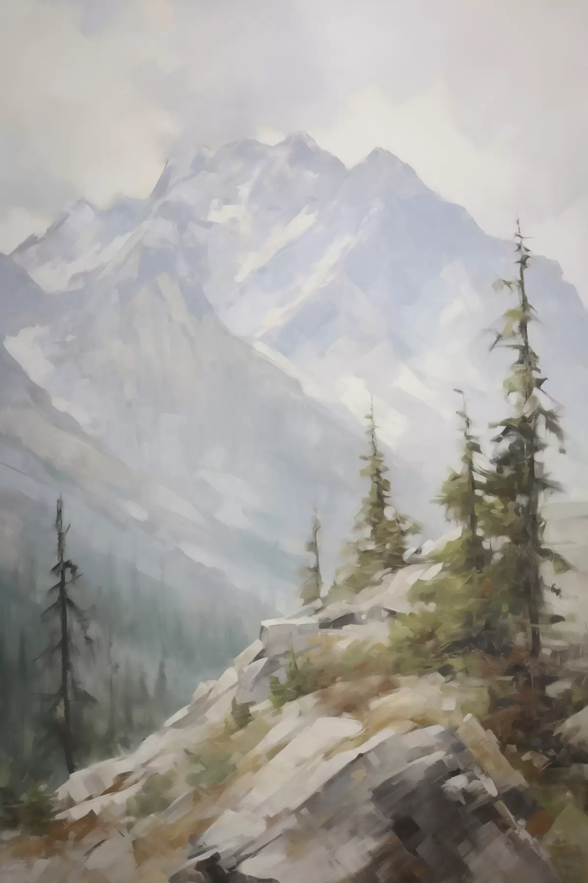 Schilderij Sparren tegen de achtergrond van bergen Art. s46202