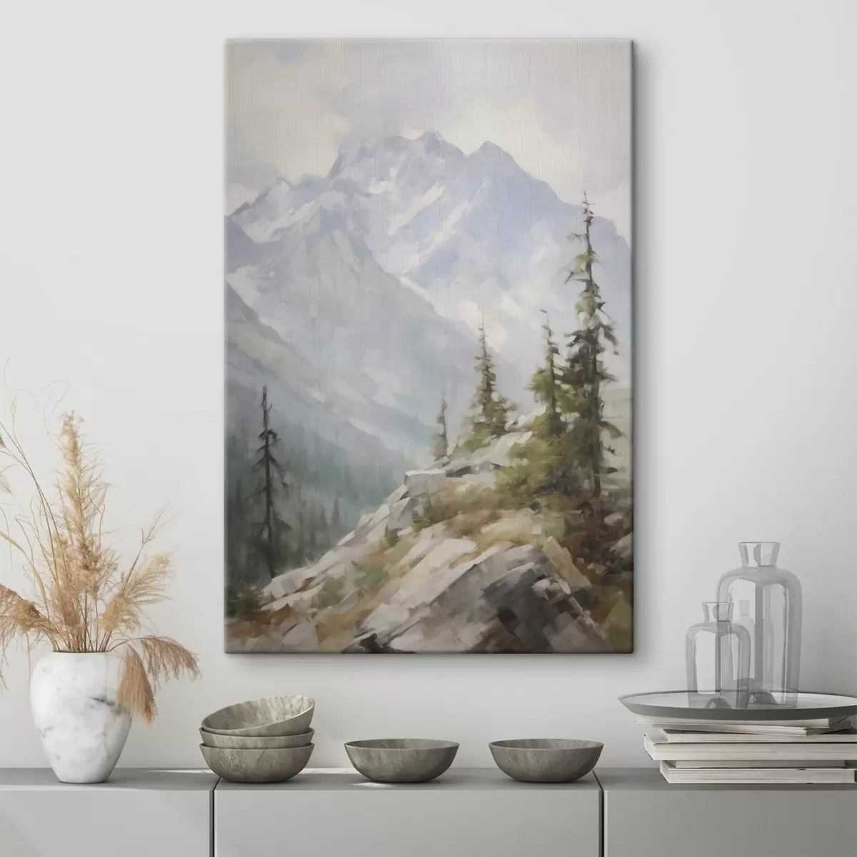 Schilderijen Sparren tegen de achtergrond van bergen s46202