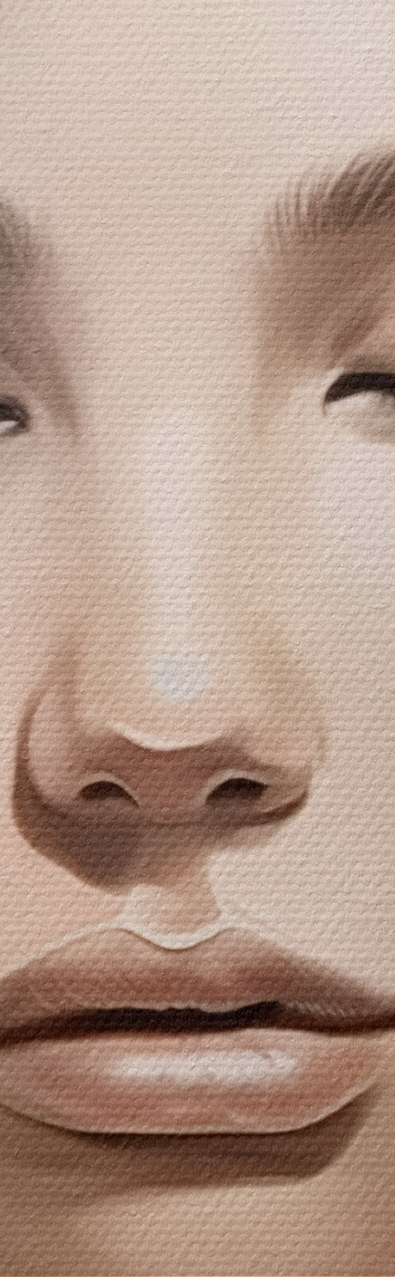 De fijne weving van draden op dit doek lijkt op het oppervlak van professionele schildersdoeken.