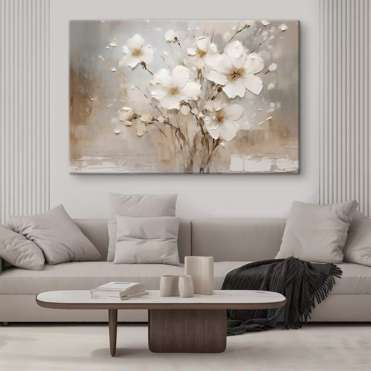 Er zijn drie soorten materiaal te bestellen: Economic Canvas - een dicht en duurzaam materiaal voor digitaal printen, identiek aan schildersdoek, waterdicht oppervlak, realistische weergave van details, materiaal met gemiddelde korrel. Premium Canvas - de textuur lijkt op die van schildersdoek (verweven kleine draden). Zachte, gedetailleerde reproductie van de afbeelding op een mat oppervlak. Eco-Premium - hoogwaardige 100% katoenen stof. Dankzij de natuurlijke katoenvezels is het materiaal duurzaam en slijtvast. Uitstekende kleurweergave en detail.