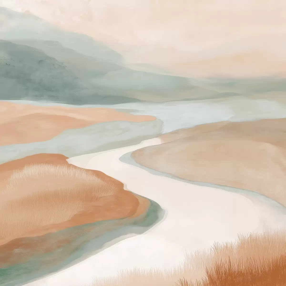 Schilderij Abstract landschap met een rivier in oranje en groen Art. s46316