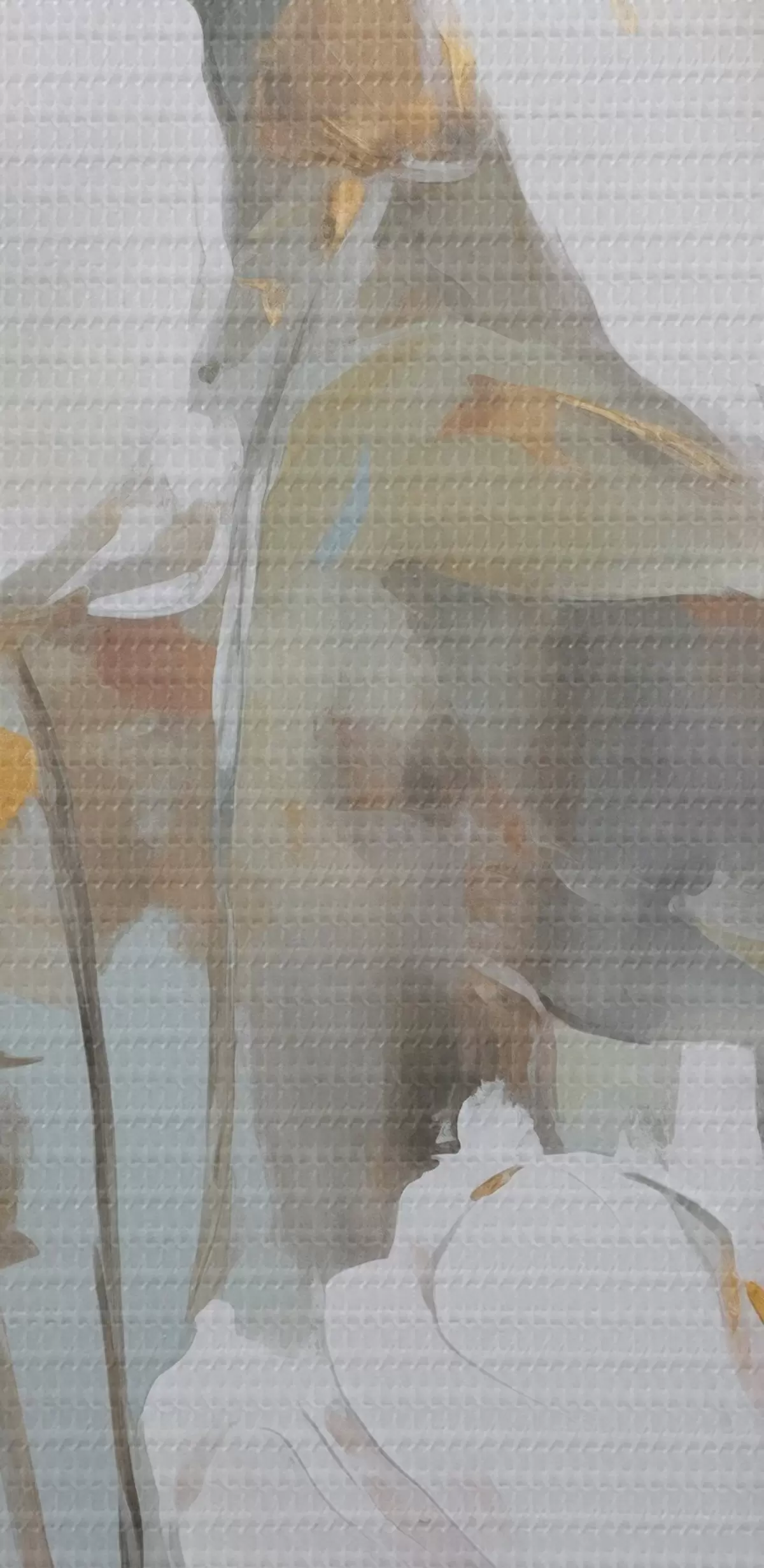 De fijne weving van draden op dit doek lijkt op het oppervlak van professionele schildersdoeken.