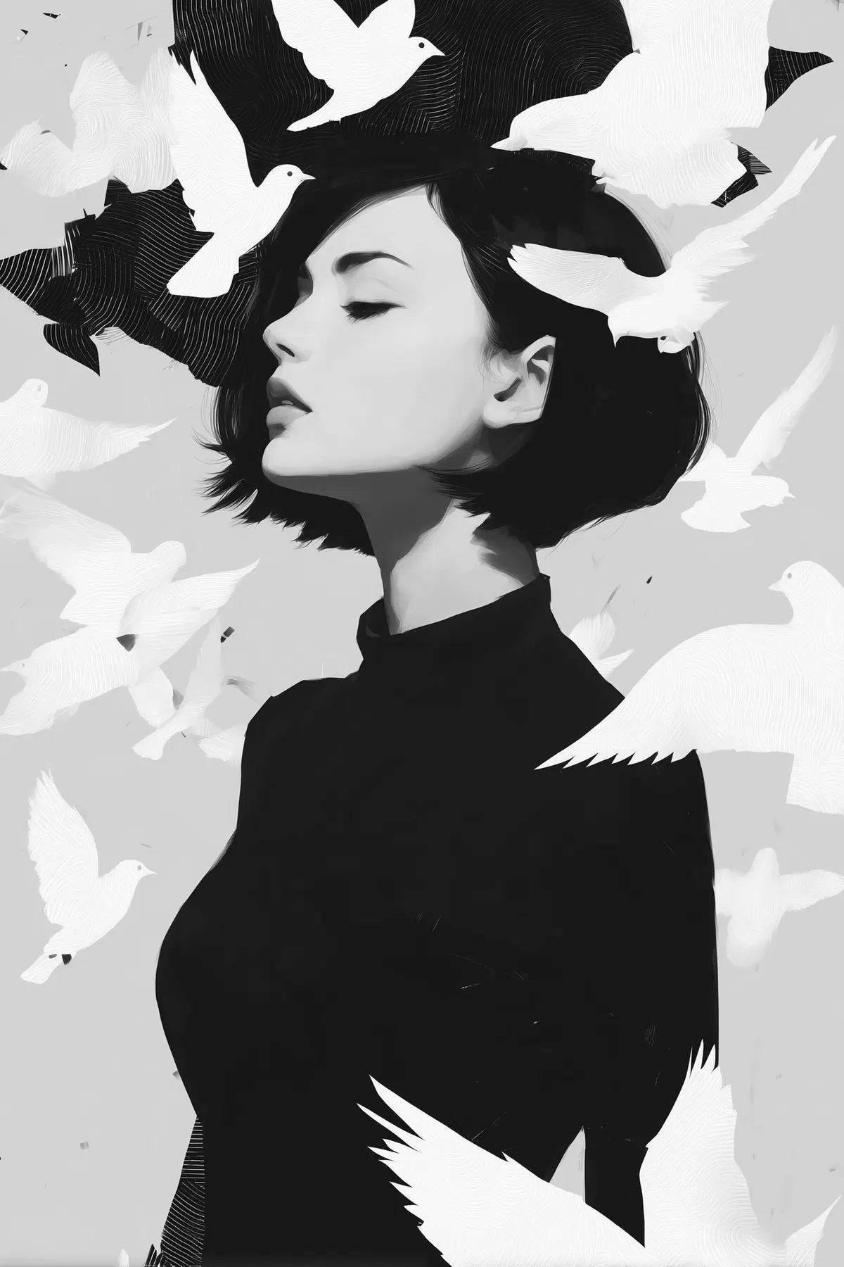 Schilderij Meisje met vogels Art. s46369