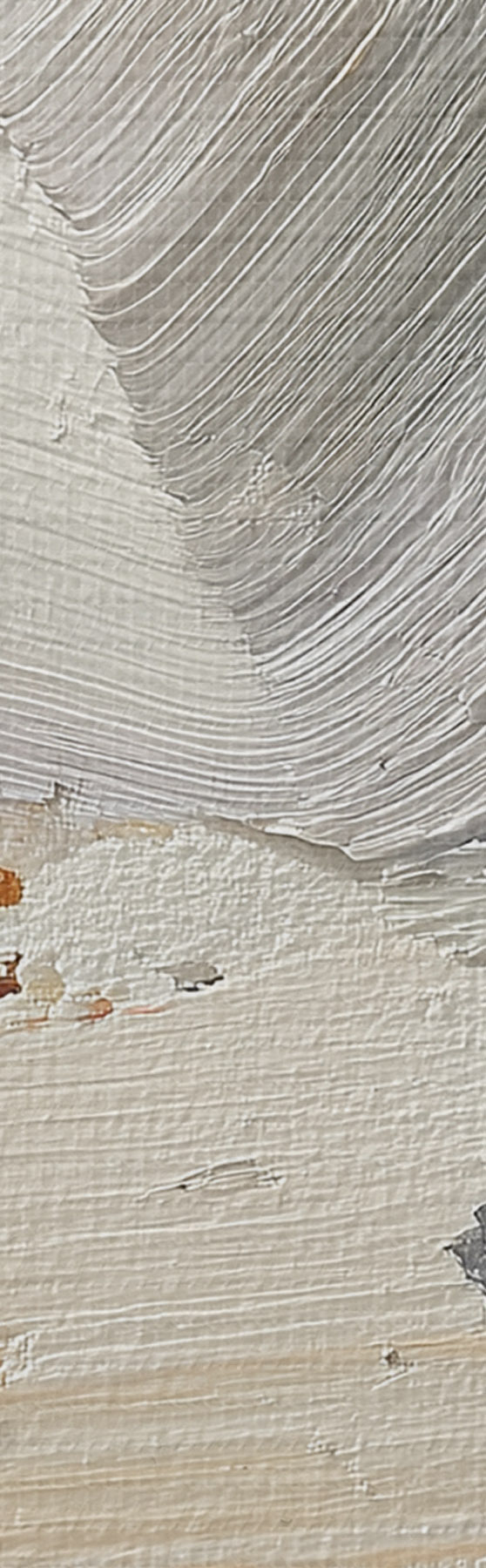 Het schilderij kan voorzichtig worden schoongeveegd met een droge zachte doek of spons; het wordt niet aanbevolen om natte producten te gebruiken. Het gebruik van een vochtige spons is alleen toegestaan als het schilderij gevernist is.