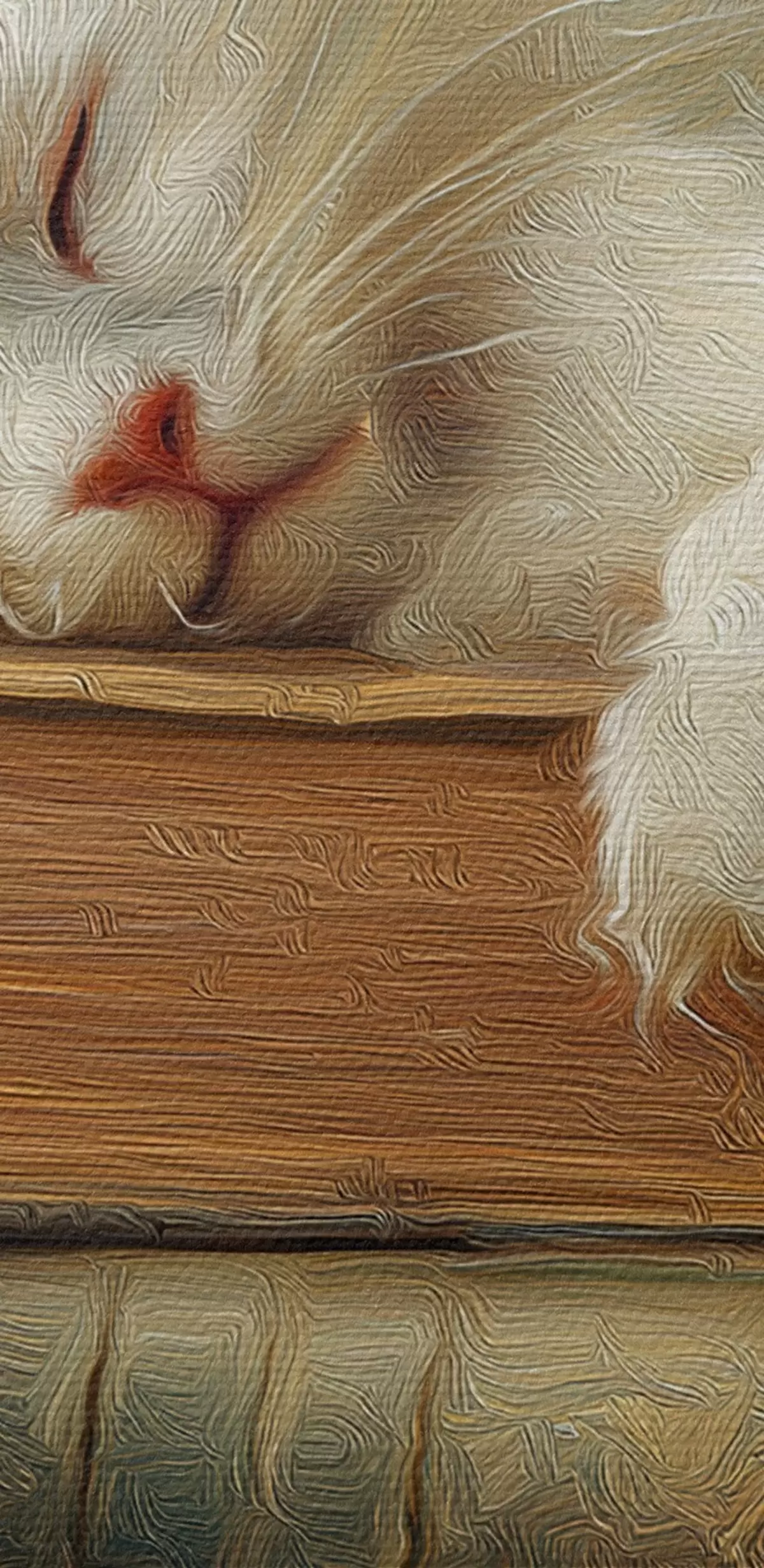 Het schilderij kan voorzichtig worden schoongeveegd met een droge zachte doek of spons; het wordt niet aanbevolen om natte producten te gebruiken. Het gebruik van een vochtige spons is alleen toegestaan als het schilderij gevernist is.