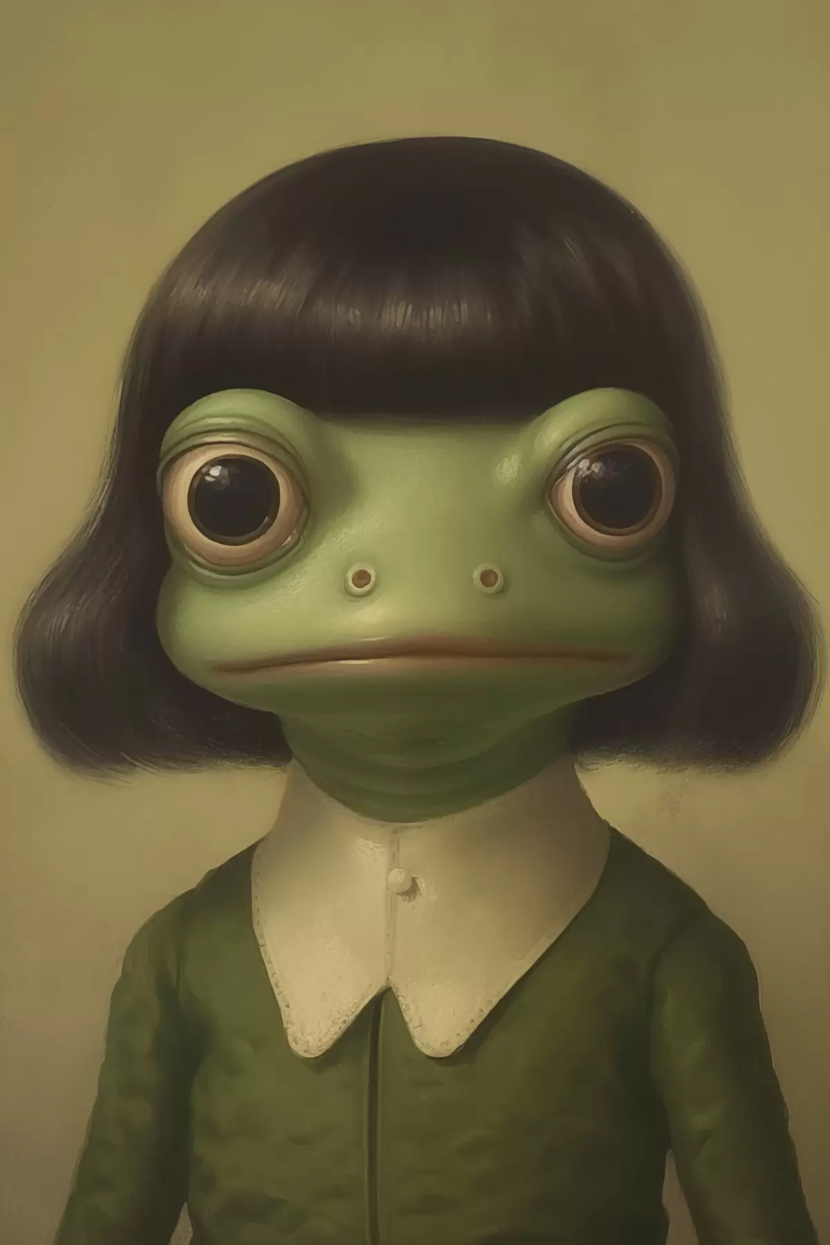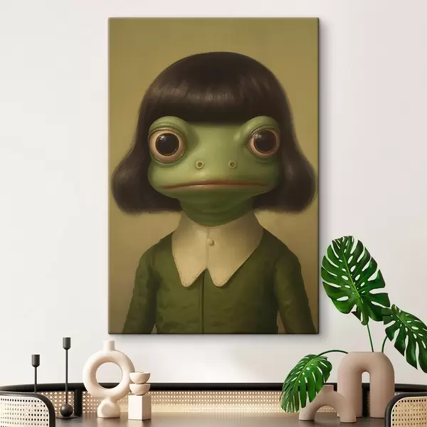 Schilderij Meisje in vintage-stijl met kikker Art. s46458