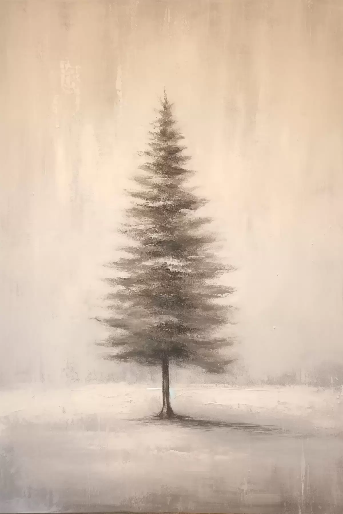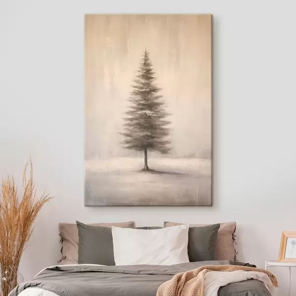 Schilderij Monochrome dennenboom. Minimalistisch winterlandschap Art. s46465