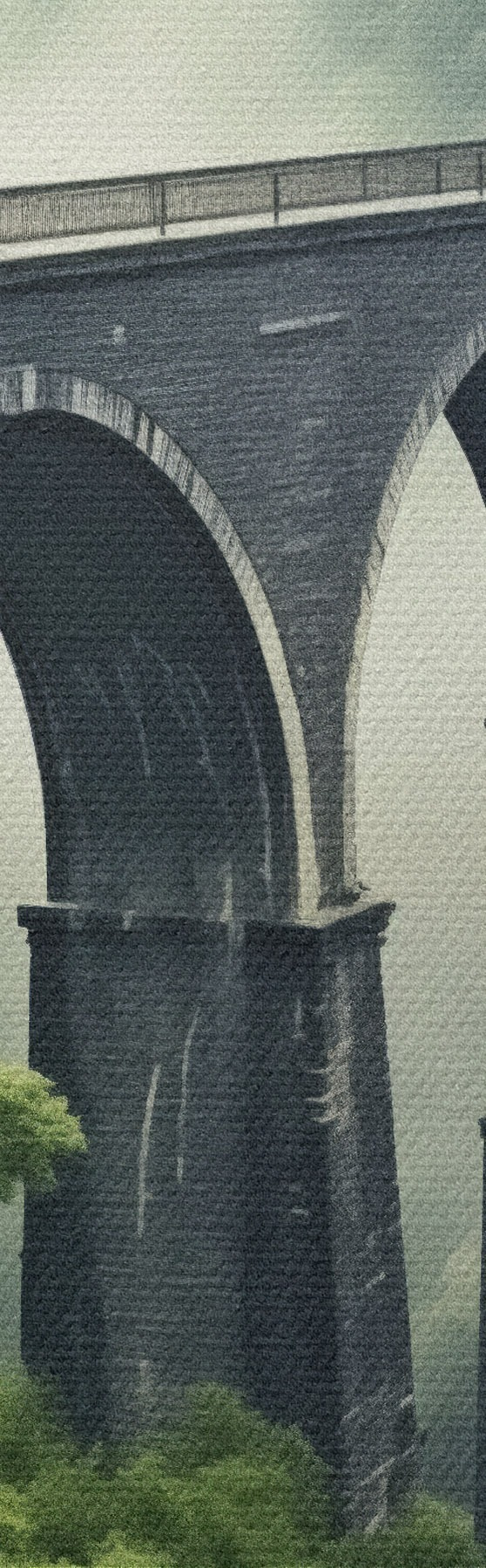 Schilderij Stenen viaduct boven mistige beboste vallei Art. s46483