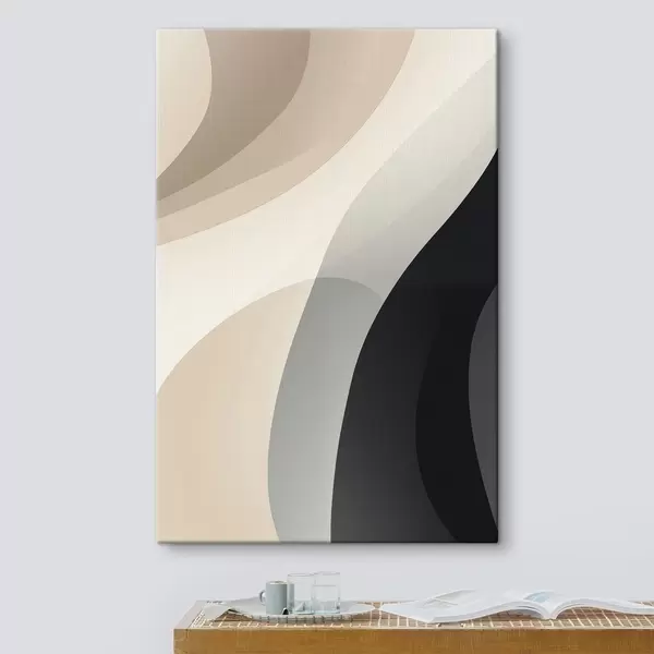 Schilderij Organische golfvormen in warm beige en antraciet Art. s46494