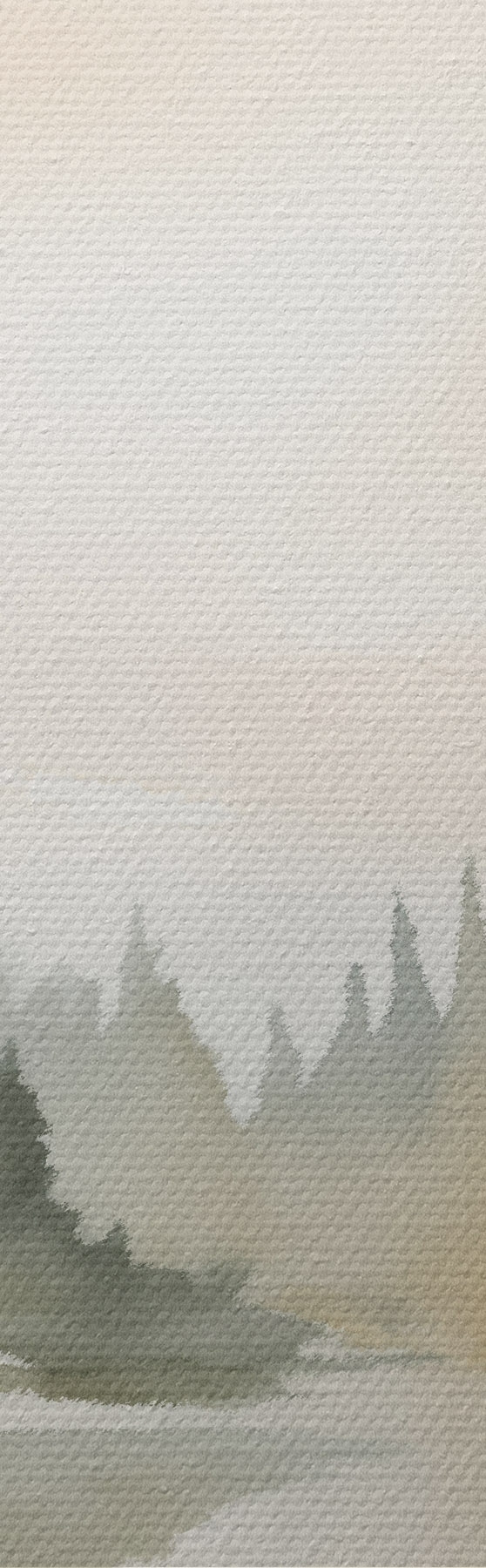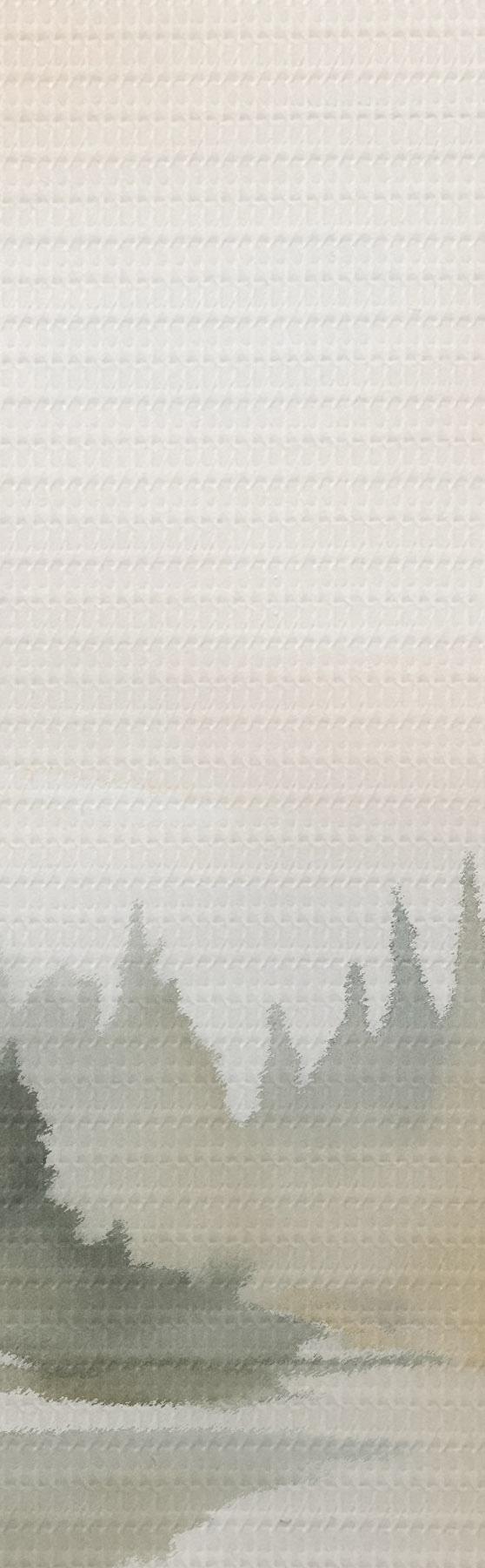 Schilderijen Mistig naaldbos boven een rustige rivier, aquarelstijl s46507