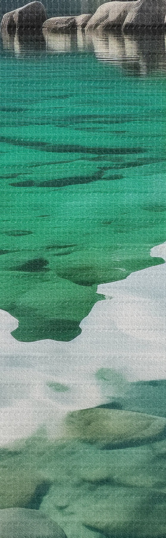 Schilderij Smaragdgroen bergmeer met rotsen eronder en torenhoge bergtoppen Art. s46515