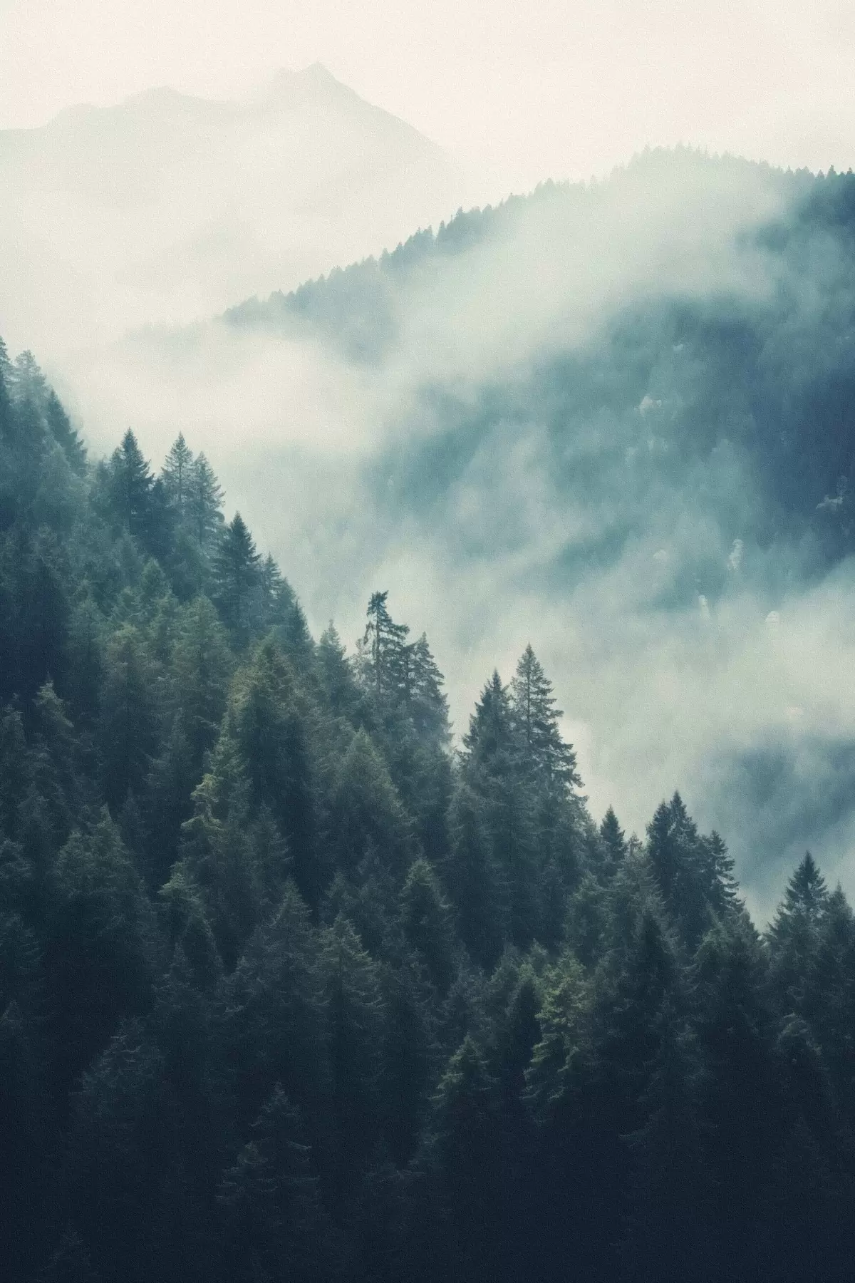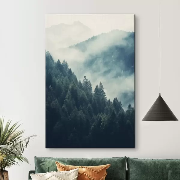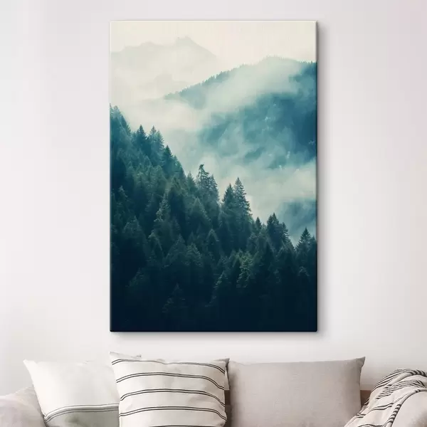 Schilderij Mistige bergkammen en donkere naaldbossen Art. s46518