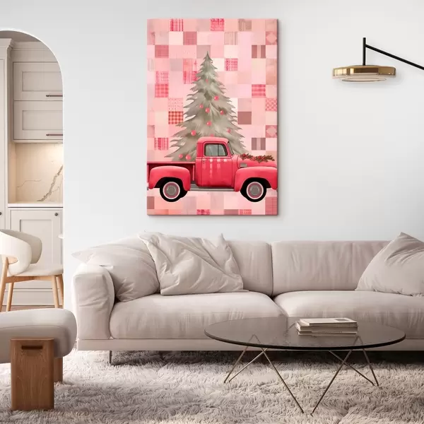 Schilderij Retro truck met een kerstboom Art. s46632
