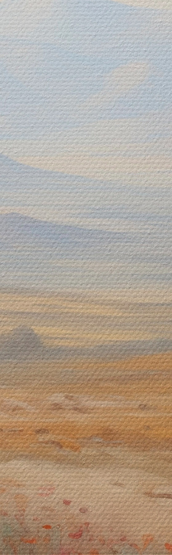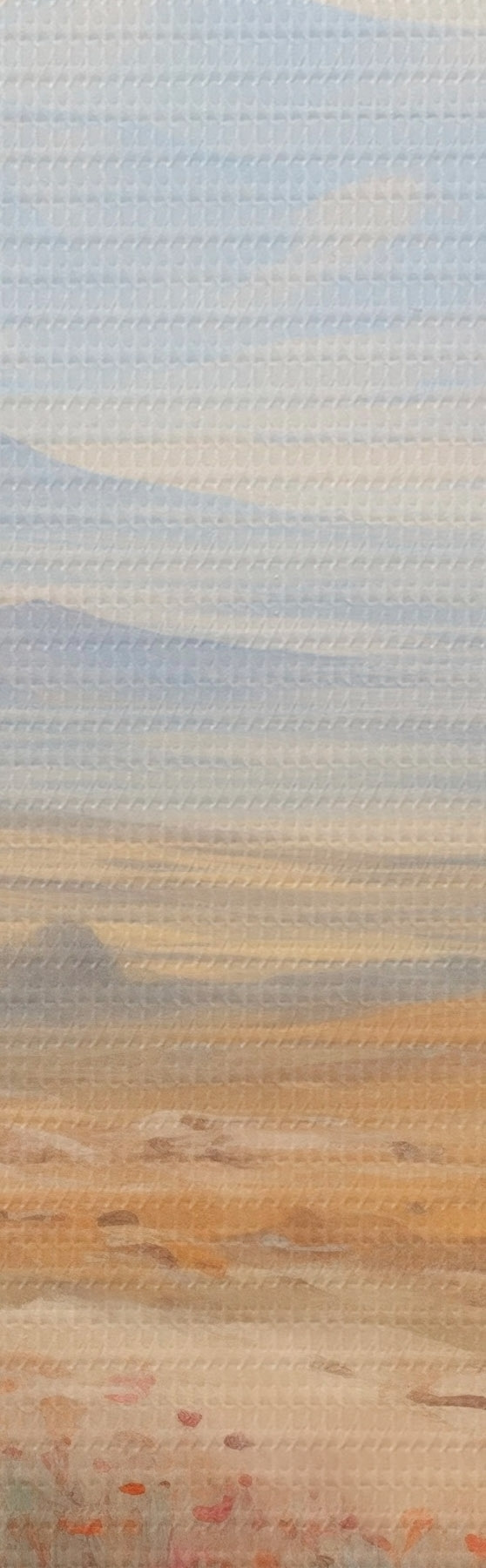 Schilderij Landschap, een veld met kleurrijke bloemen en bergen op de achtergrond, zachte pastelkleuren Art. s46685