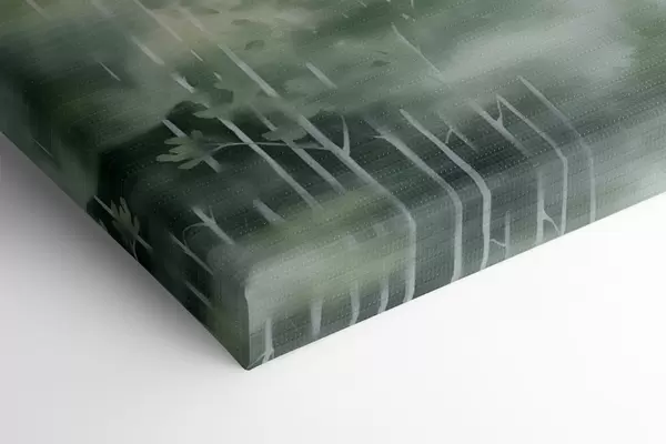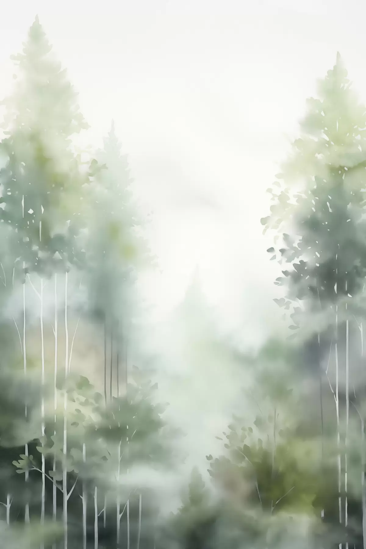 Schilderij Aquarelschilderij imitatie van abstract bos met hoge bomen en groen gebladerte, zachte gedempte kleuren Art. s46689