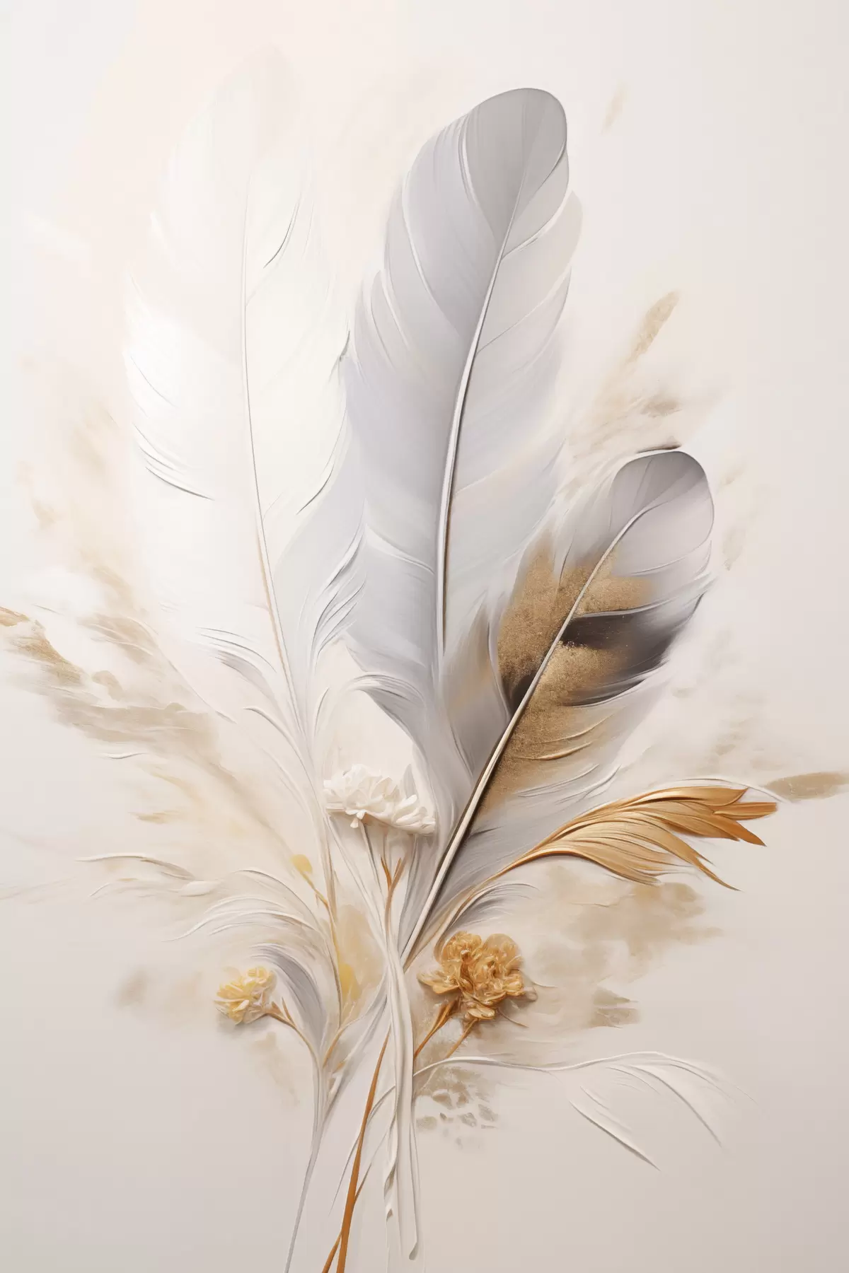 Schilderij Abstracte veren, omgeven door beige en bruine pluimen, zacht en delicaat, op een lichtbeige achtergrond Art. s46712