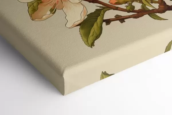 Schilderijen Bloeiende tak met witte bloemen op een beige achtergrond in de stijl van een klassieke illustratie s46923