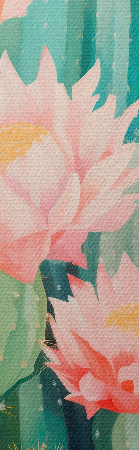 Schilderijen Bloeiende cactussen met roze en oranje bloemen in illustratiestijl s46934