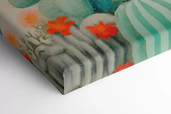 Schilderij Bloeiende cactussen met roze en oranje bloemen in illustratiestijl Art. s46934