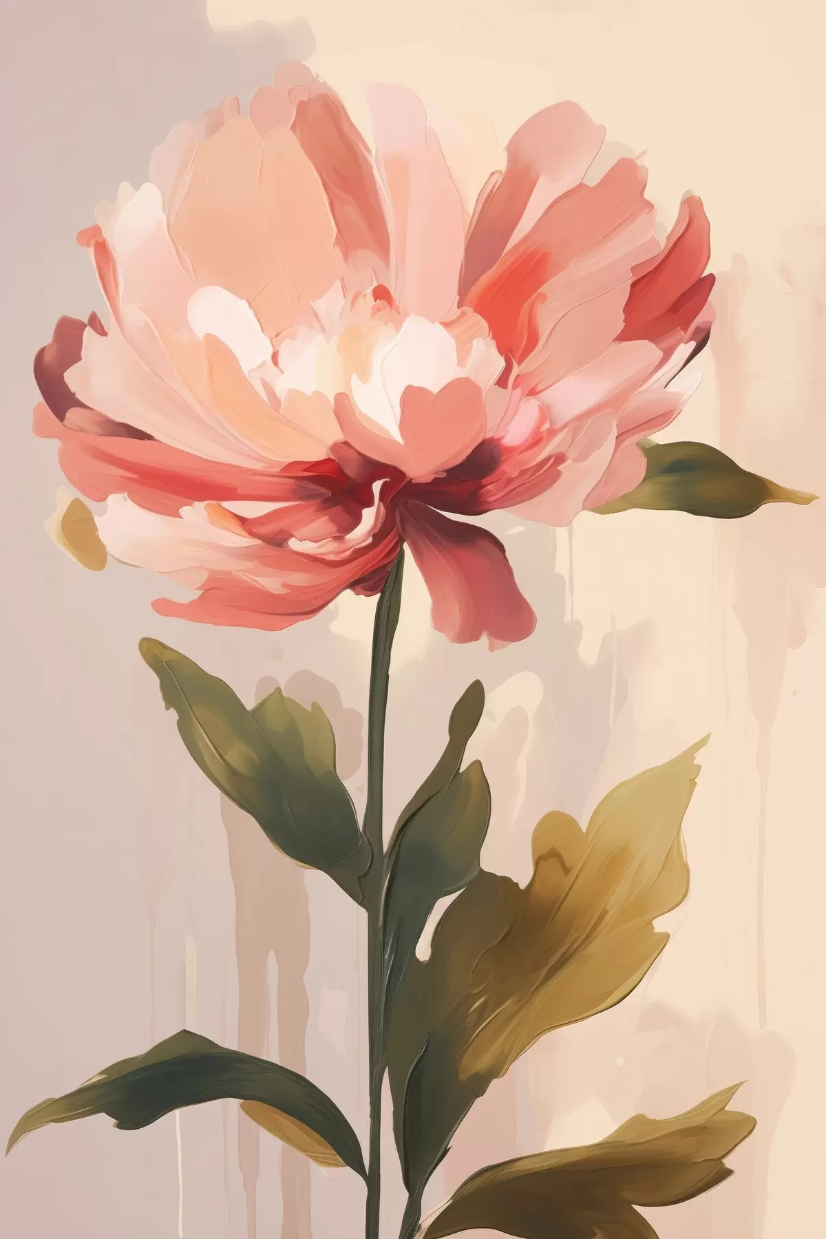 Schilderij Pioenroos met koraalroze bloemblaadjes in een moderne illustratiestijl Art. s46948