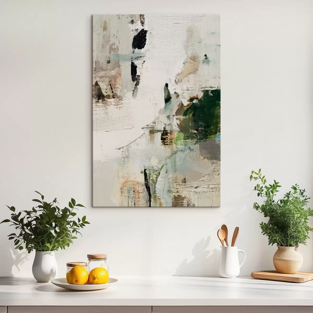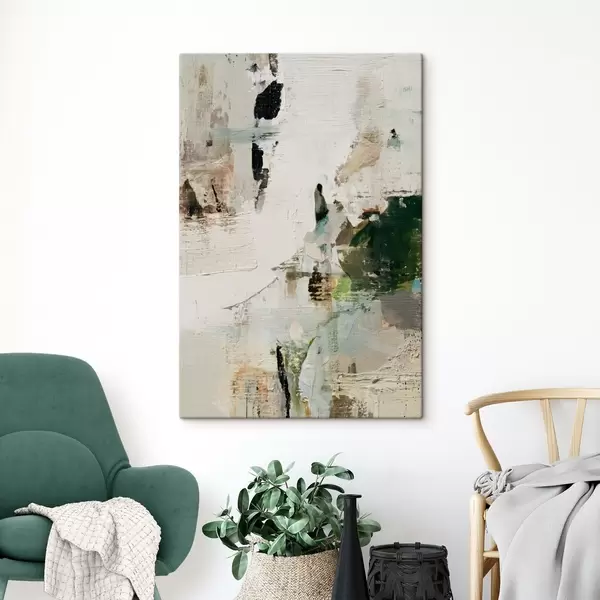 Schilderij Abstracte compositie in pasteltinten met donkergroene accenten in olieverfstijl Art. s46960