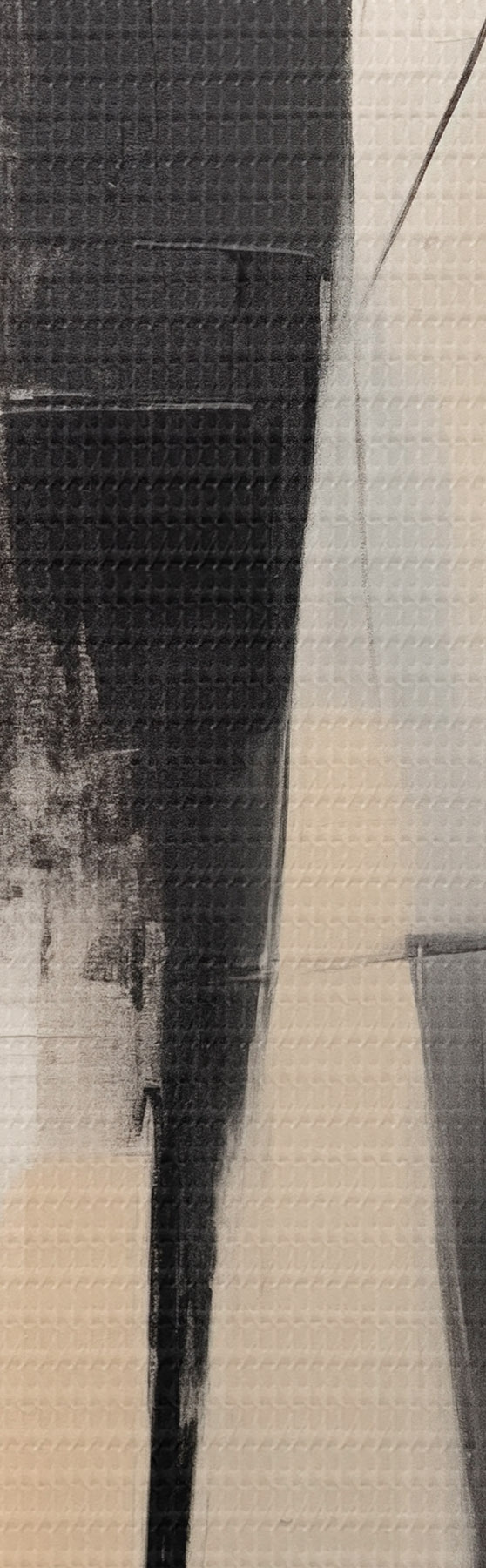 De fijne weving van draden op dit doek lijkt op het oppervlak van professionele schildersdoeken.