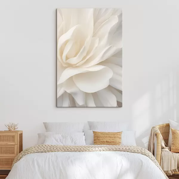 Schilderij Abstracte witte bloem met delicate, gelaagde bloemblaadjes, minimalistische kunst Art. s47024