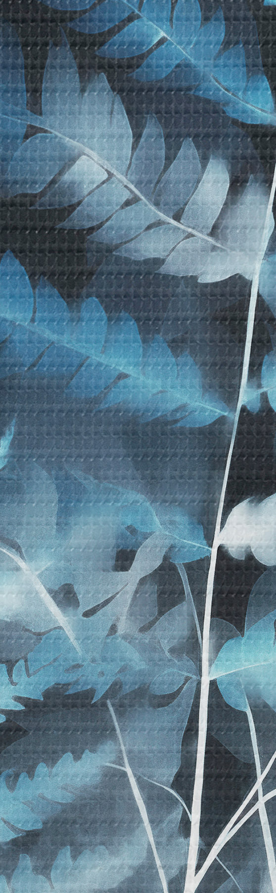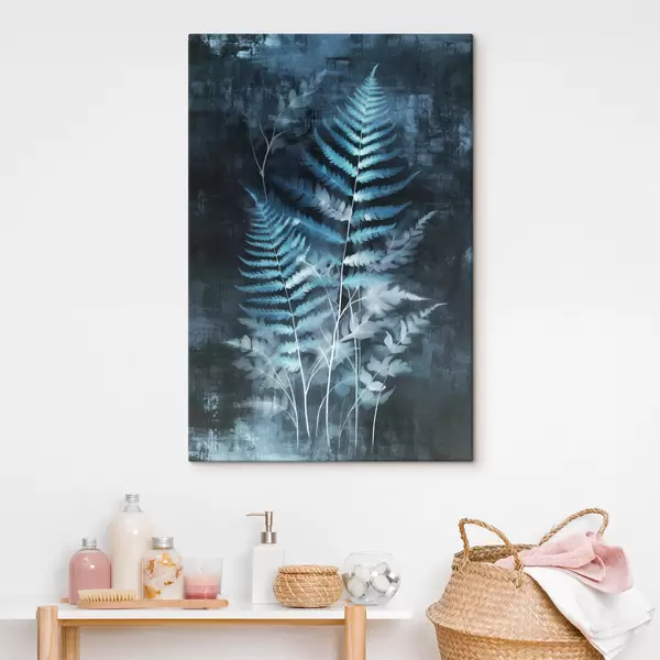 Schilderij Blauwe varens en planten tegen een donkere, gestructureerde achtergrond, met de nadruk op de ingewikkelde details, röntgeneffect Art. s47026