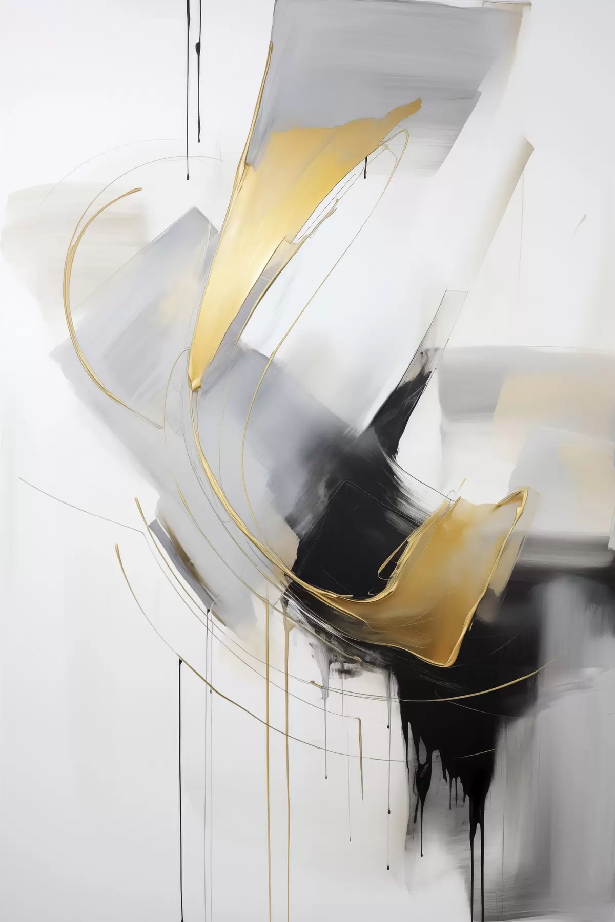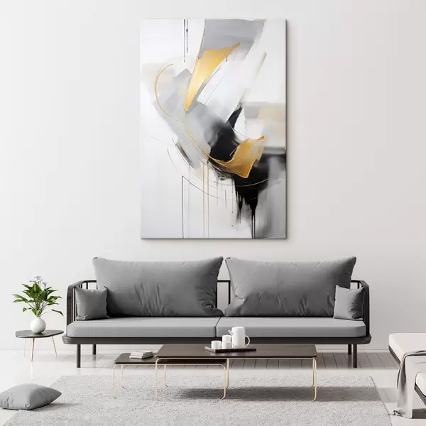 Schilderij Abstract schilderij met gele en zwart-witte penseelstreken, dynamische lijnen Art. s47034