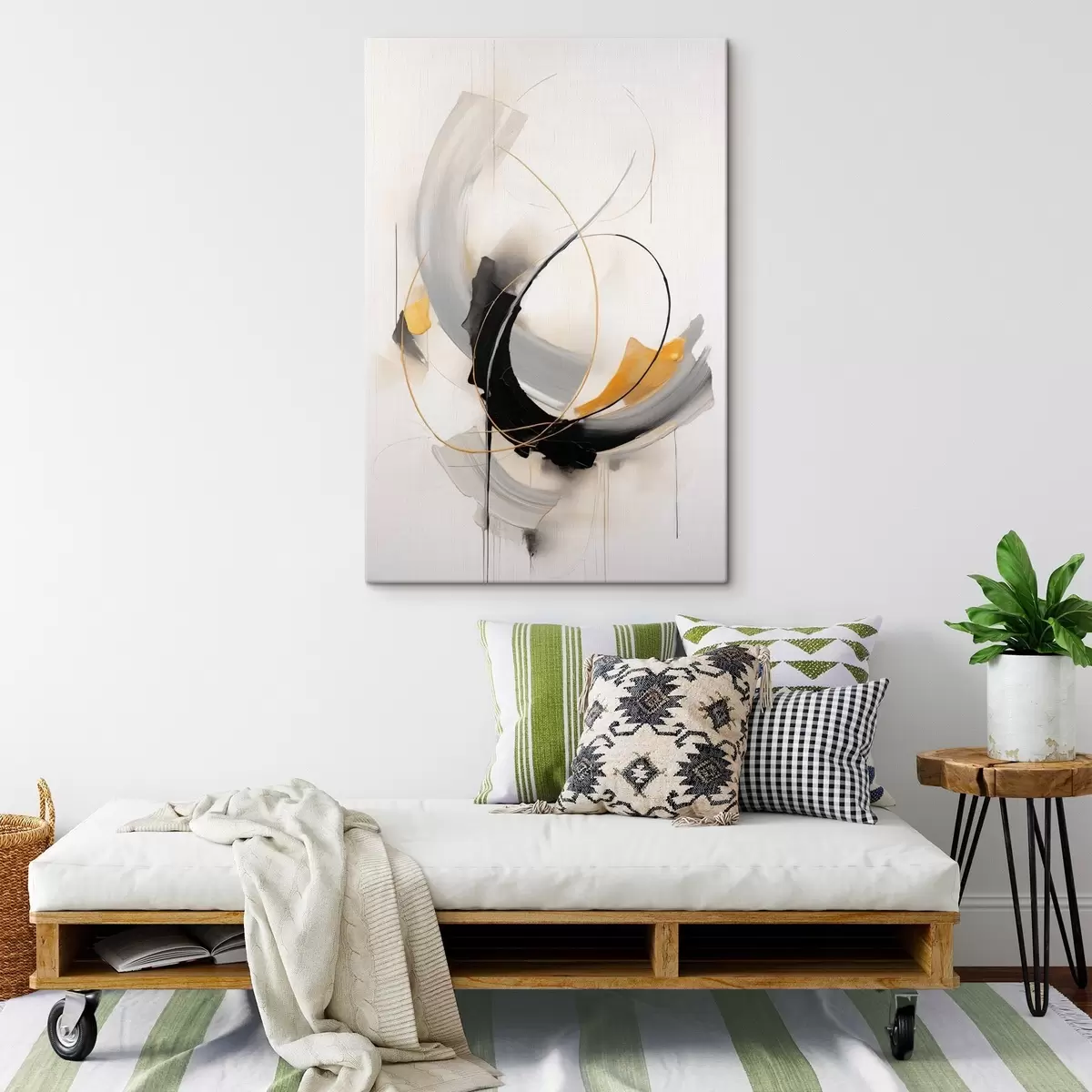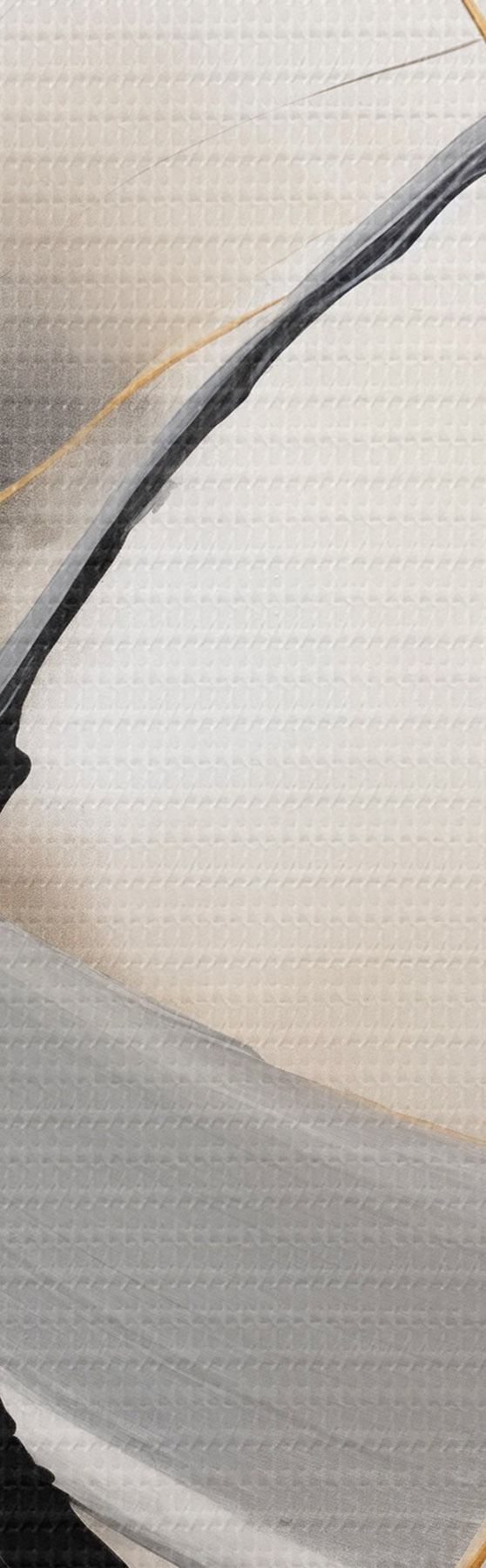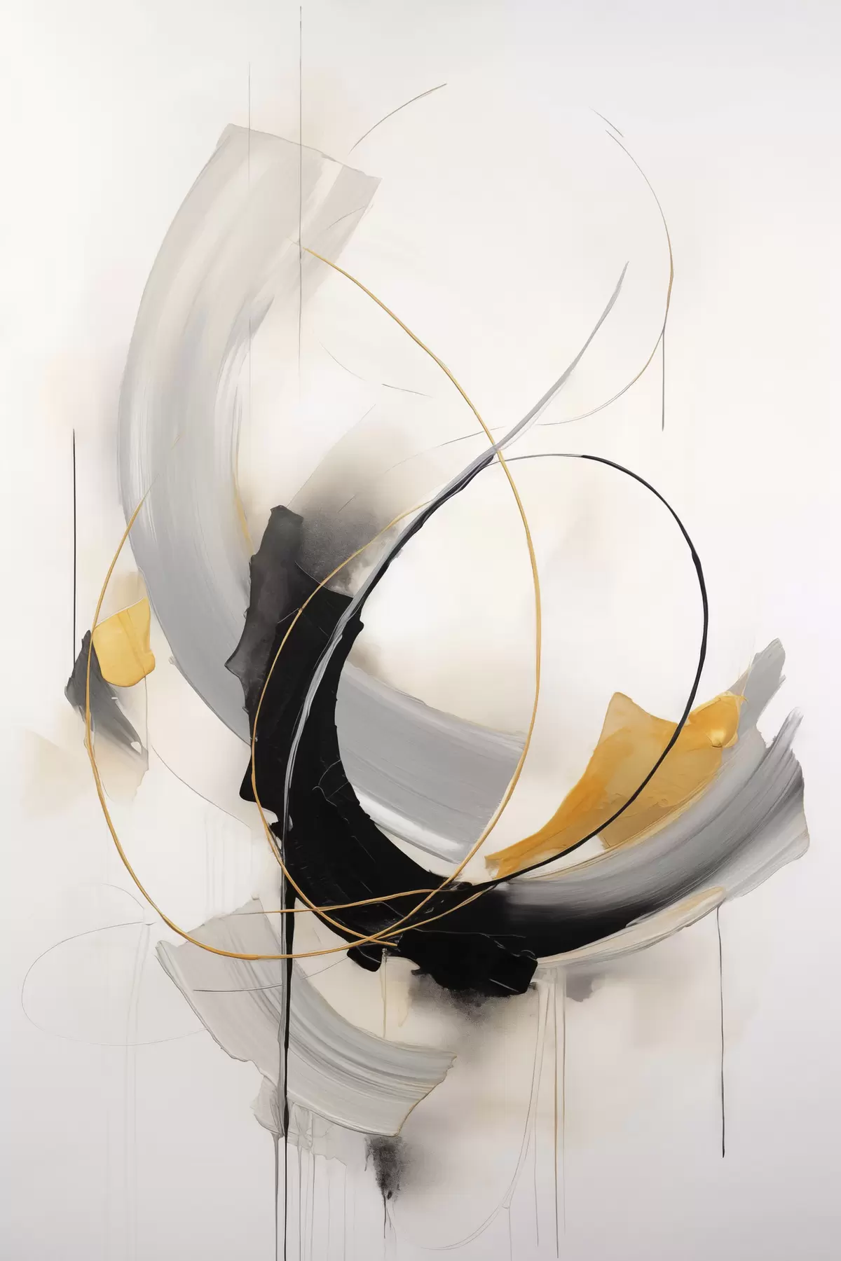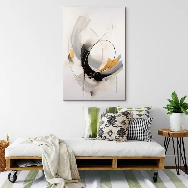 Schilderij Abstract schilderij met gele en zwart-witte penseelstreken, dynamische lijnen Art. s47035