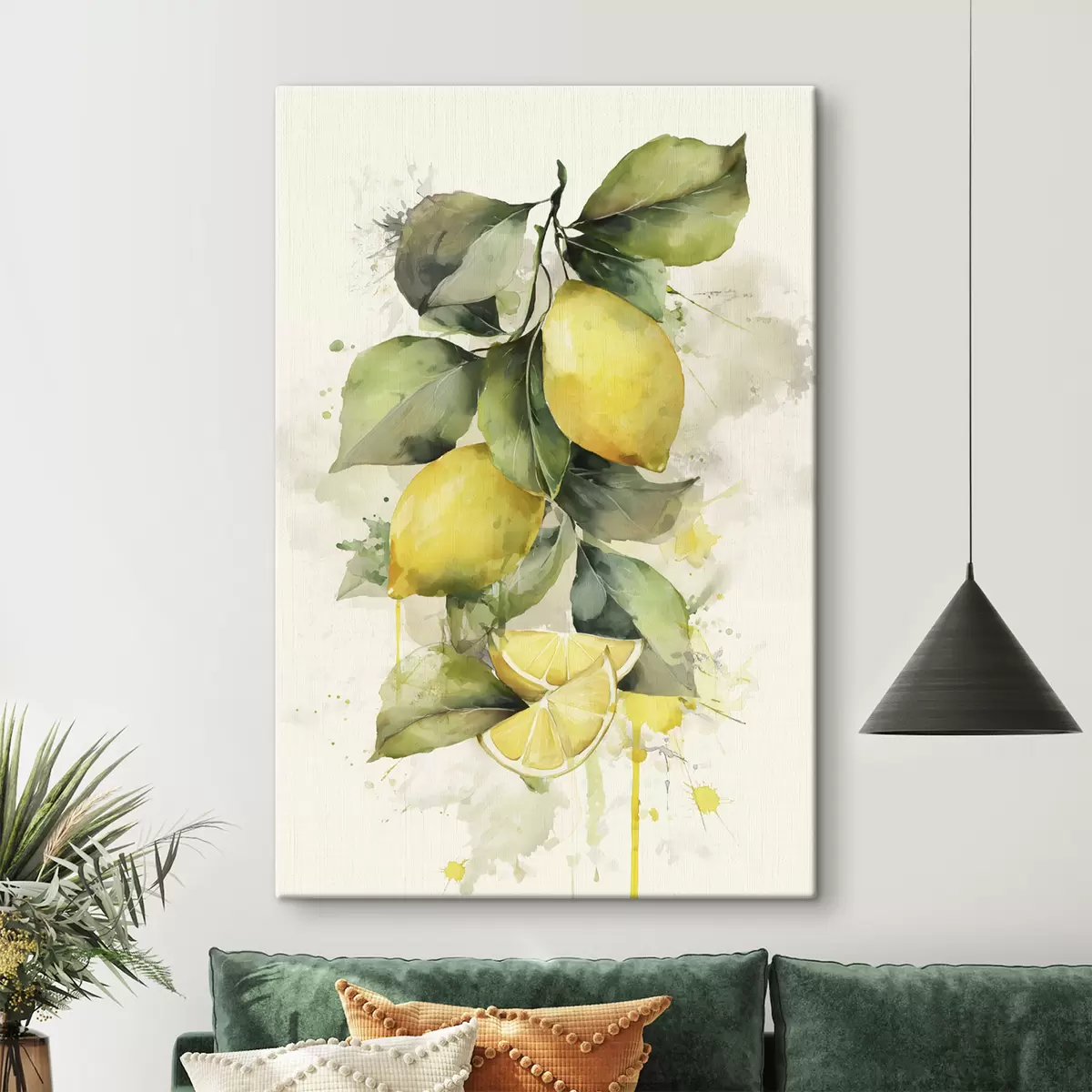 Schilderij tak met citroenen in aquarelstijl Art. s47124
