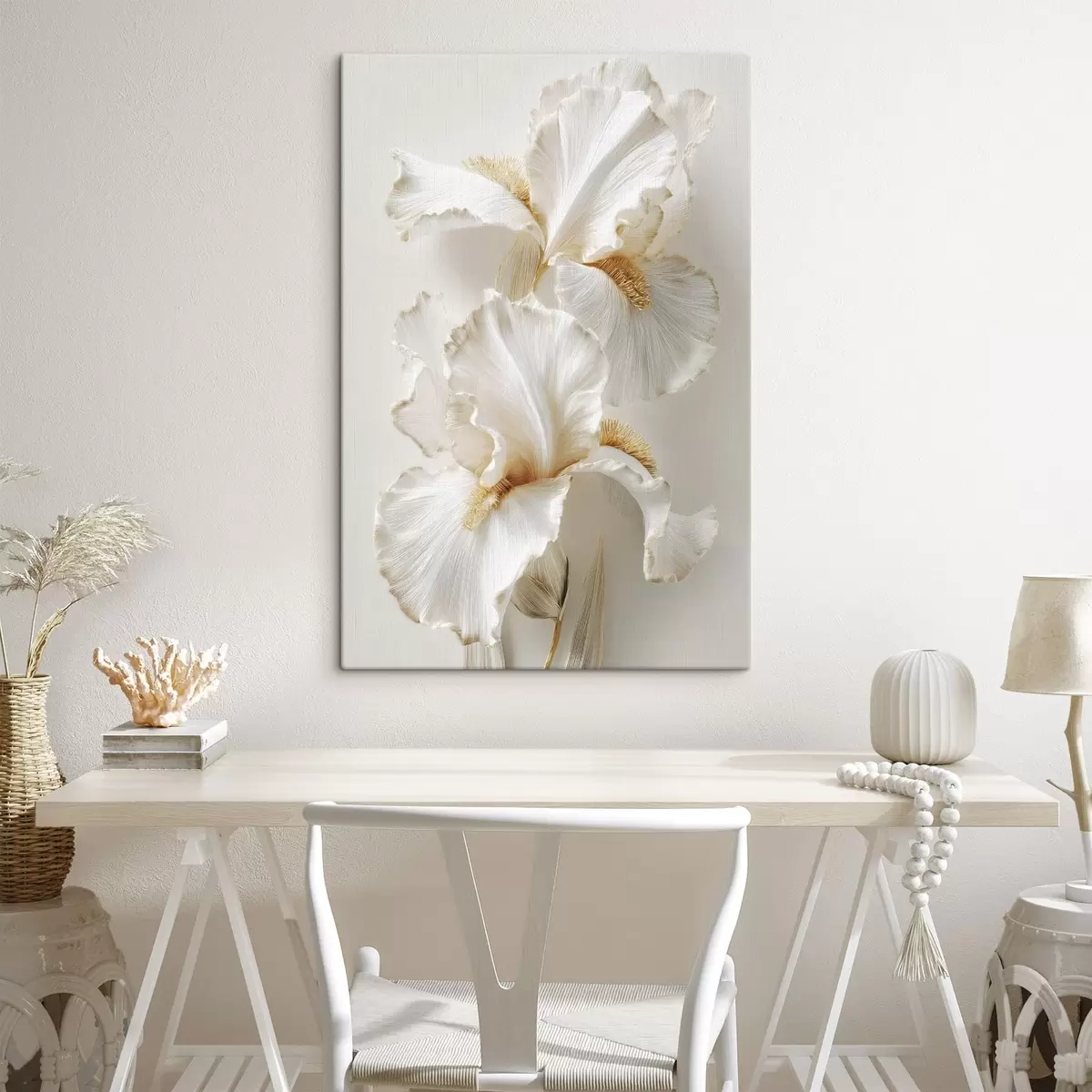 Schilderij grote witte irisbloemen Art. s47138