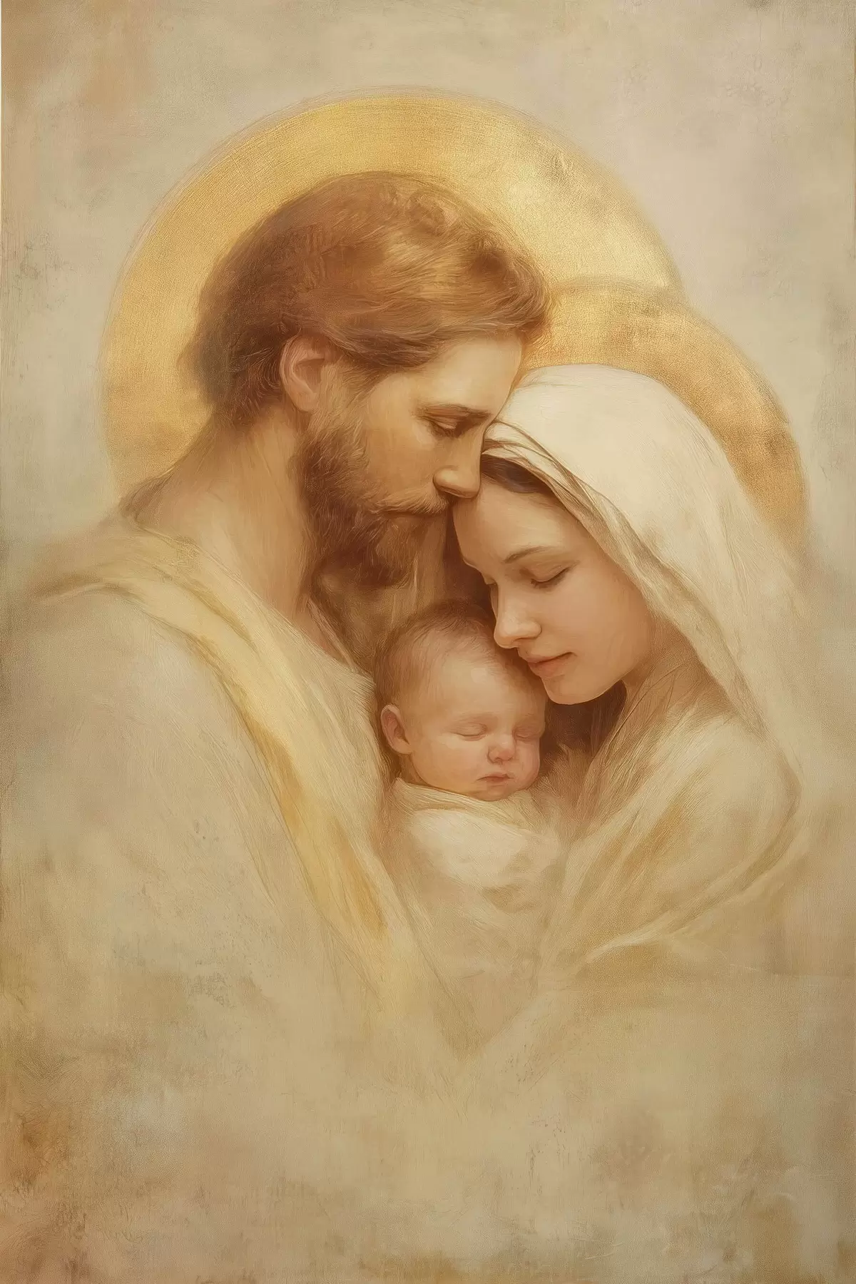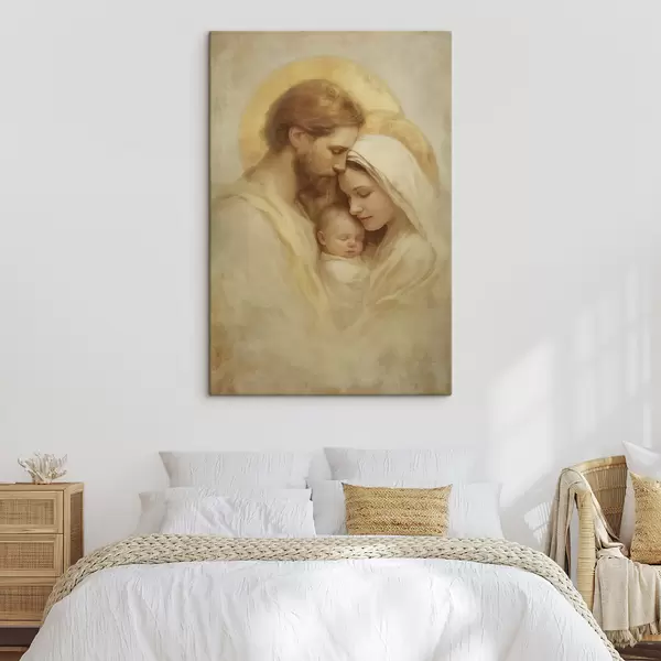 Schilderij De Maagd Maria en Jozef met het kindje Jezus in de stijl van een oud fresco Art. s47141