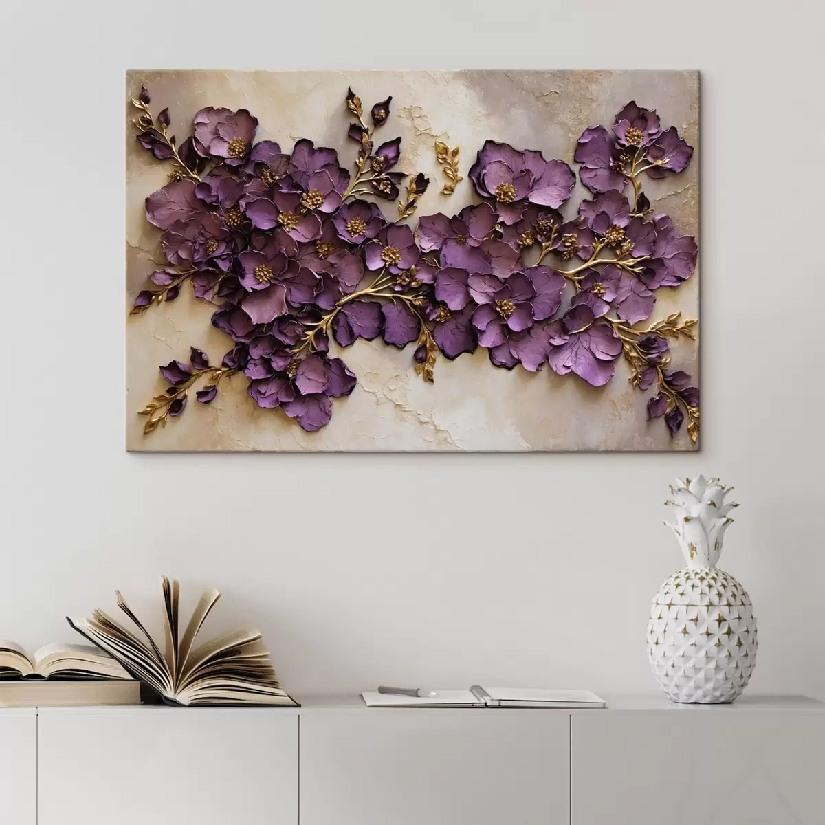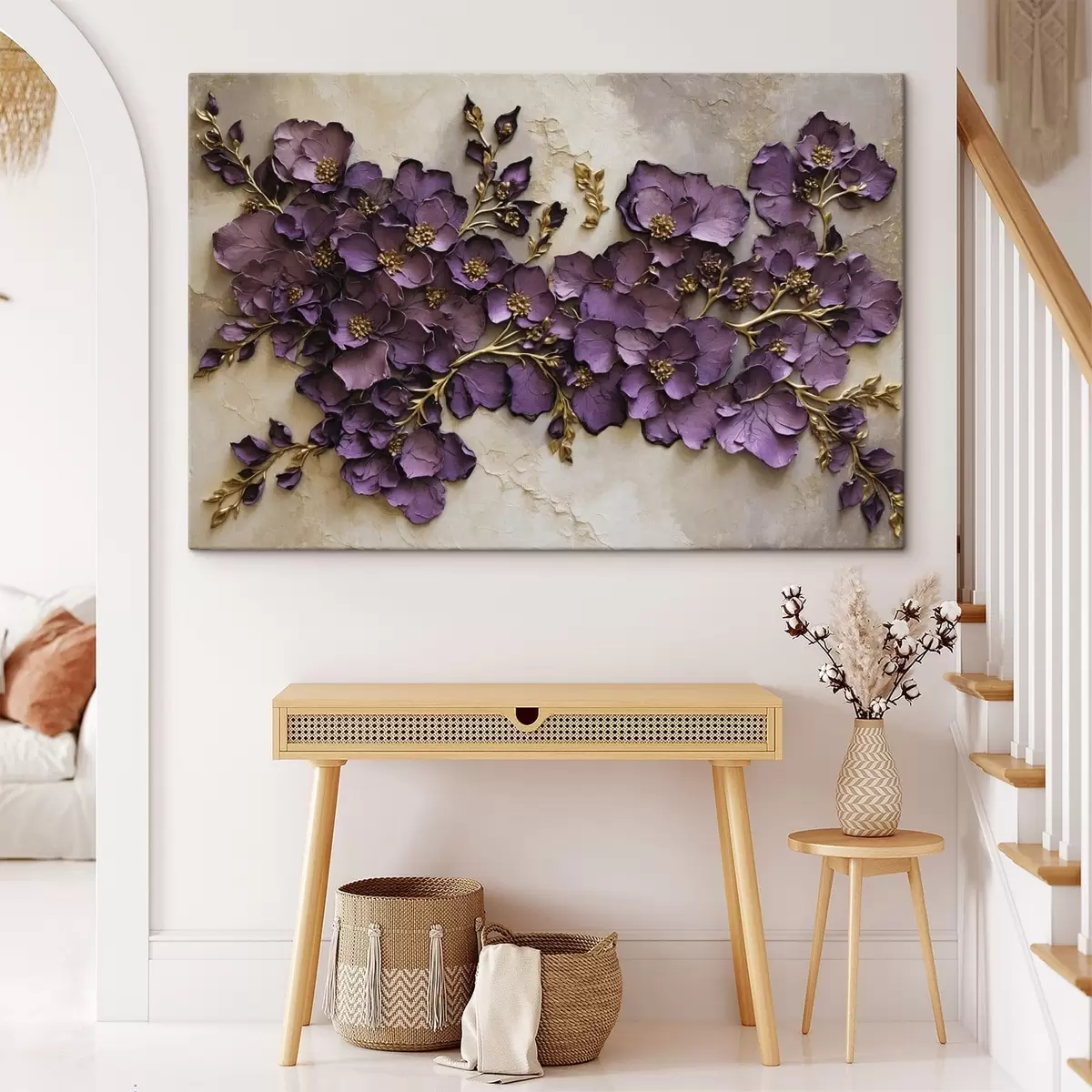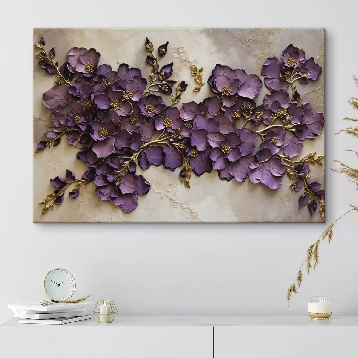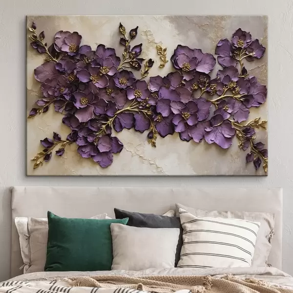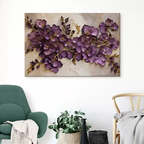 Schilderij Arrangement van paarse bloemen met accenten Art. s47277