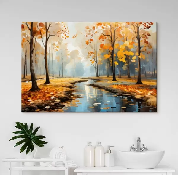 Schilderij Herfstbos met een beekje en gele bladeren Art. s47278