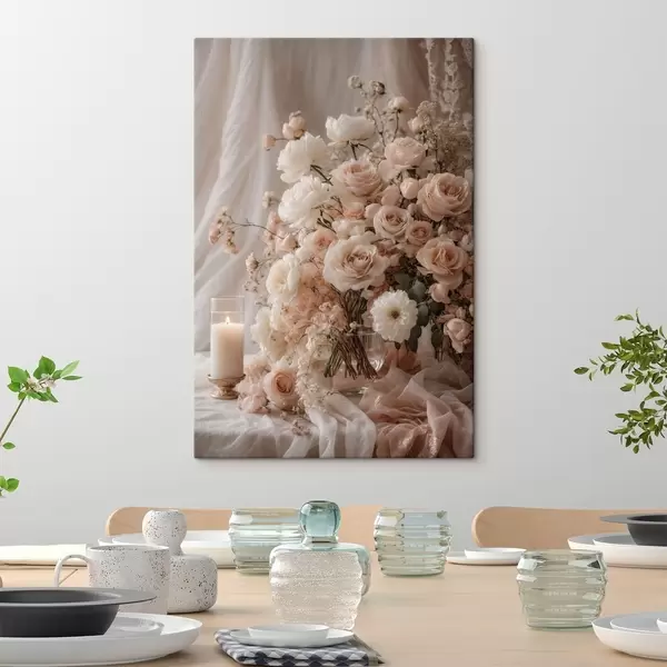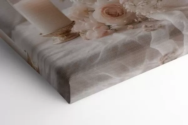 Schilderij Crèmekleurige bloemen naast een brandende kaars Art. s47281