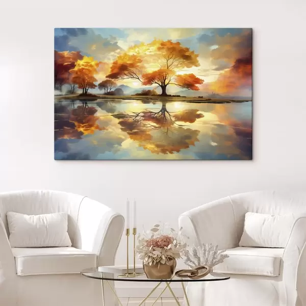 Schilderij Levendige bomen weerspiegeld in het water Art. s47287
