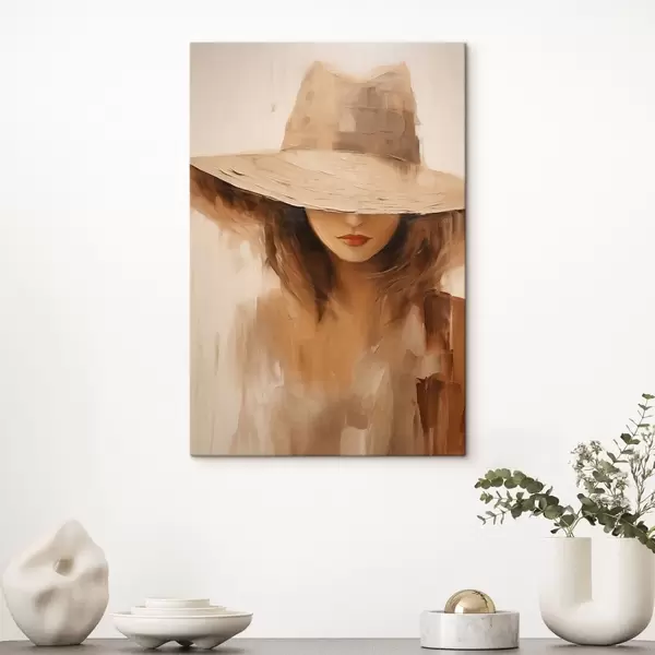 Schilderij Vrouw met hoed in warme abstracte penseelstreken Art. s47312