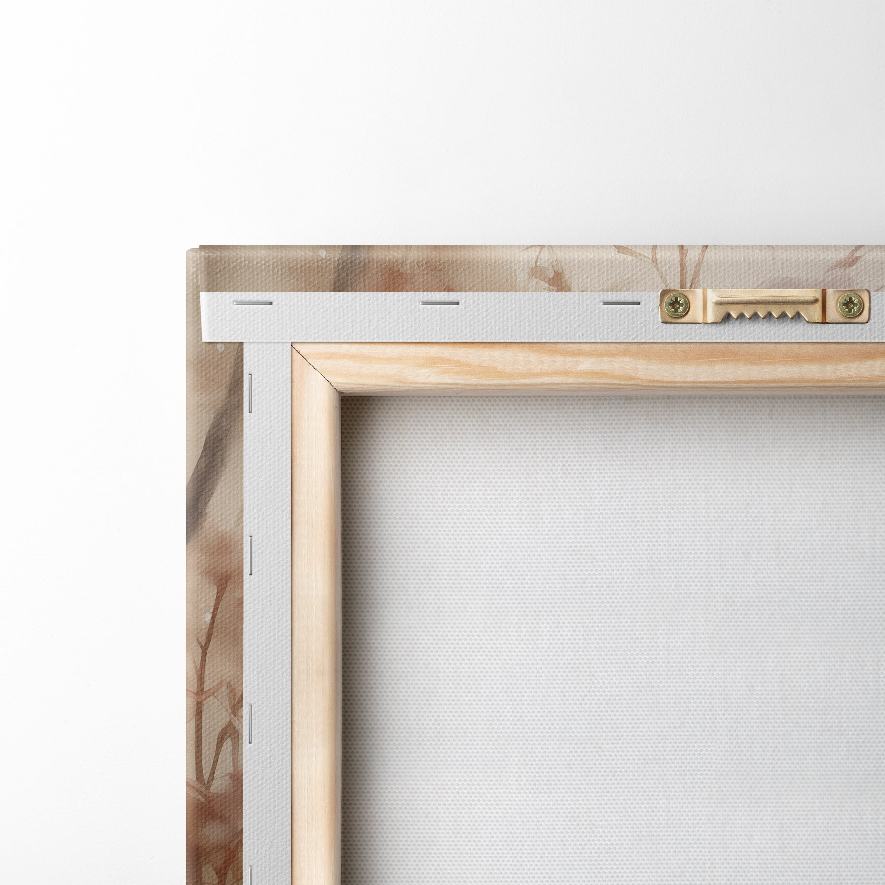 Om het doek op te spannen op spielatten zonder de afbeelding te beschadigen, gebruiken we gespiegeld beeld.
