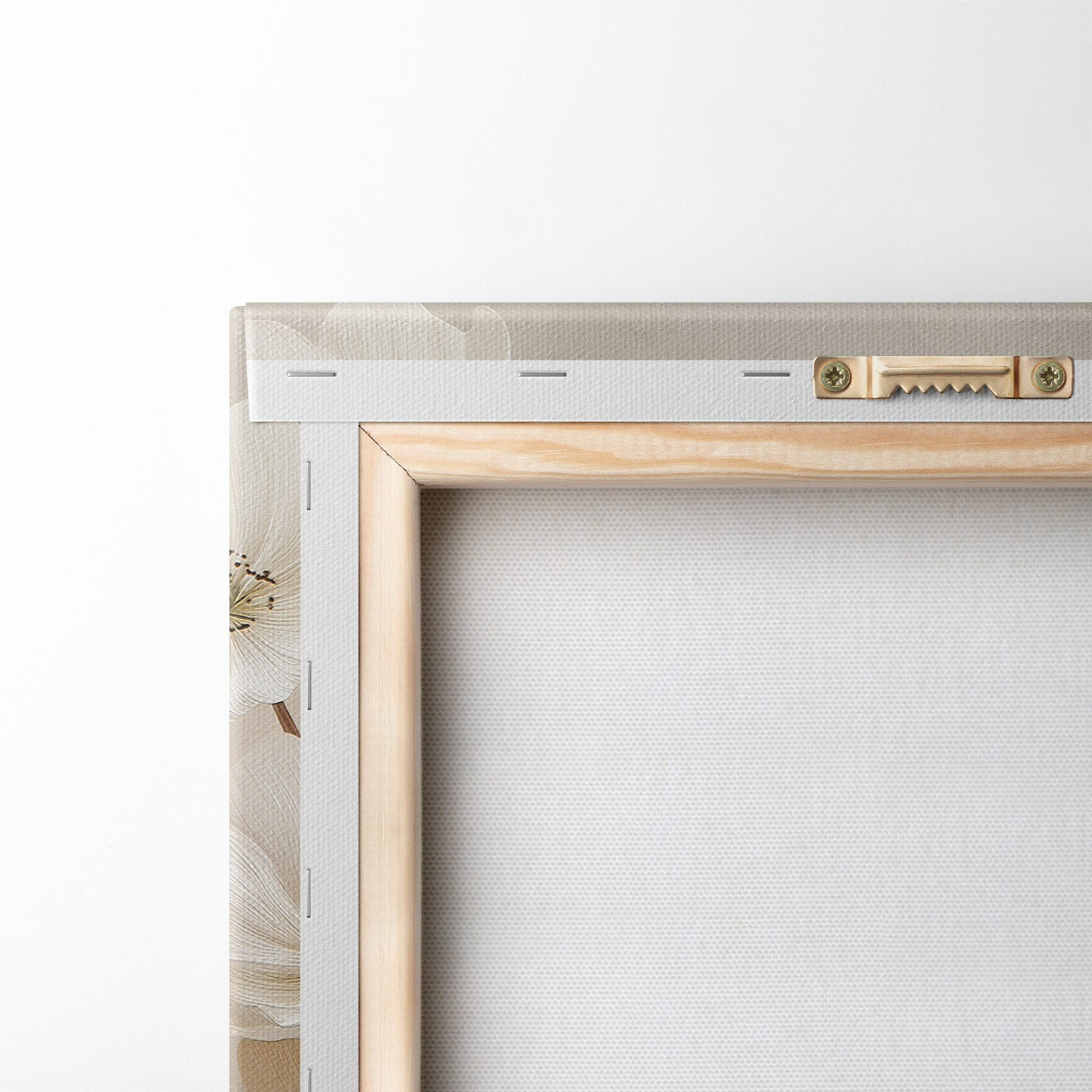 Om het doek op te spannen op spielatten zonder de afbeelding te beschadigen, gebruiken we gespiegeld beeld.