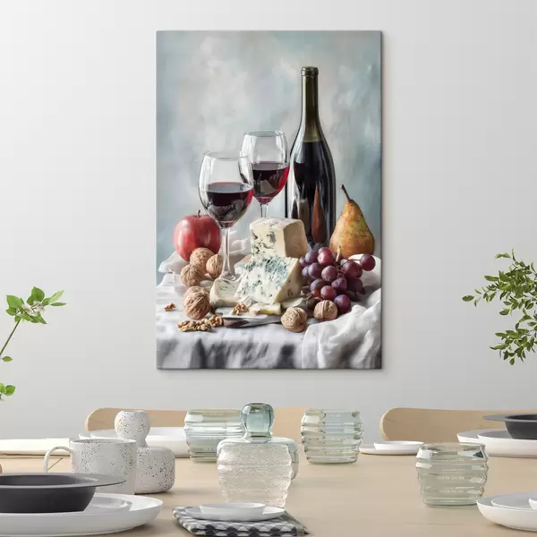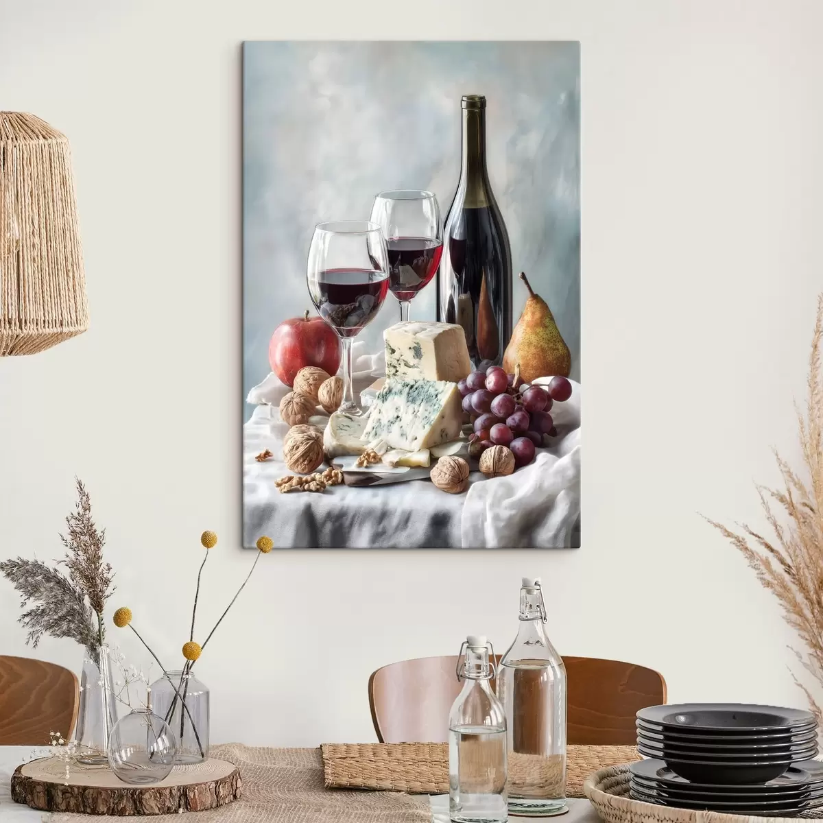 Schilderij stilleven met wijn, kaas en noten Art. s47686