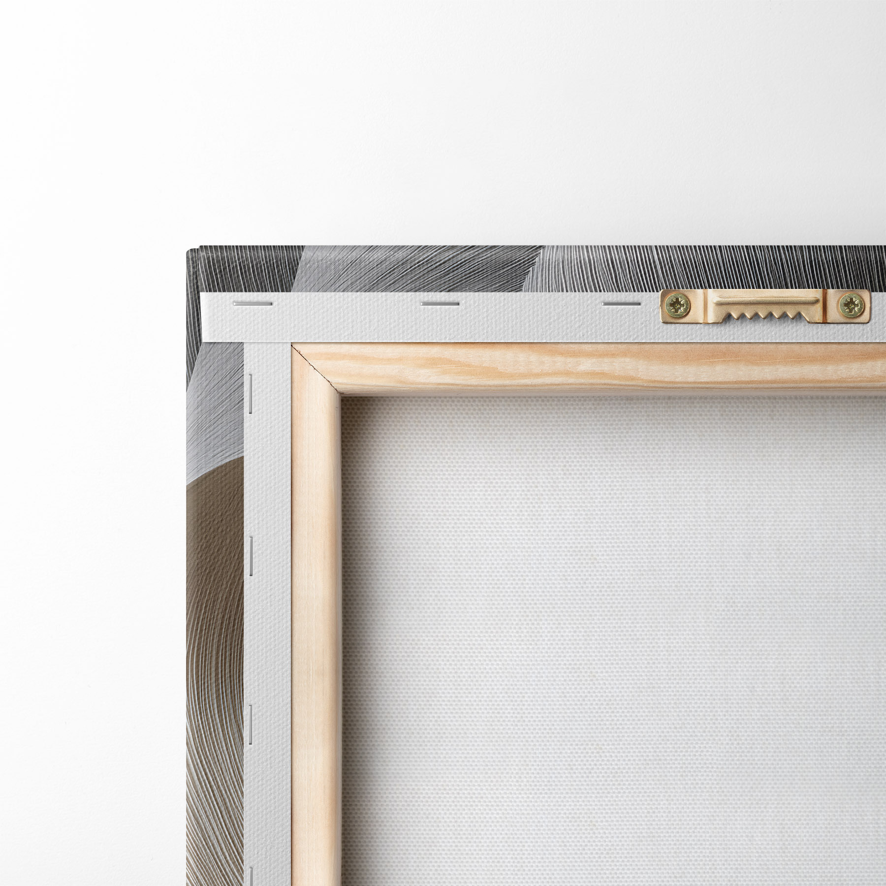 Om het doek op te spannen op spielatten zonder de afbeelding te beschadigen, gebruiken we gespiegeld beeld.