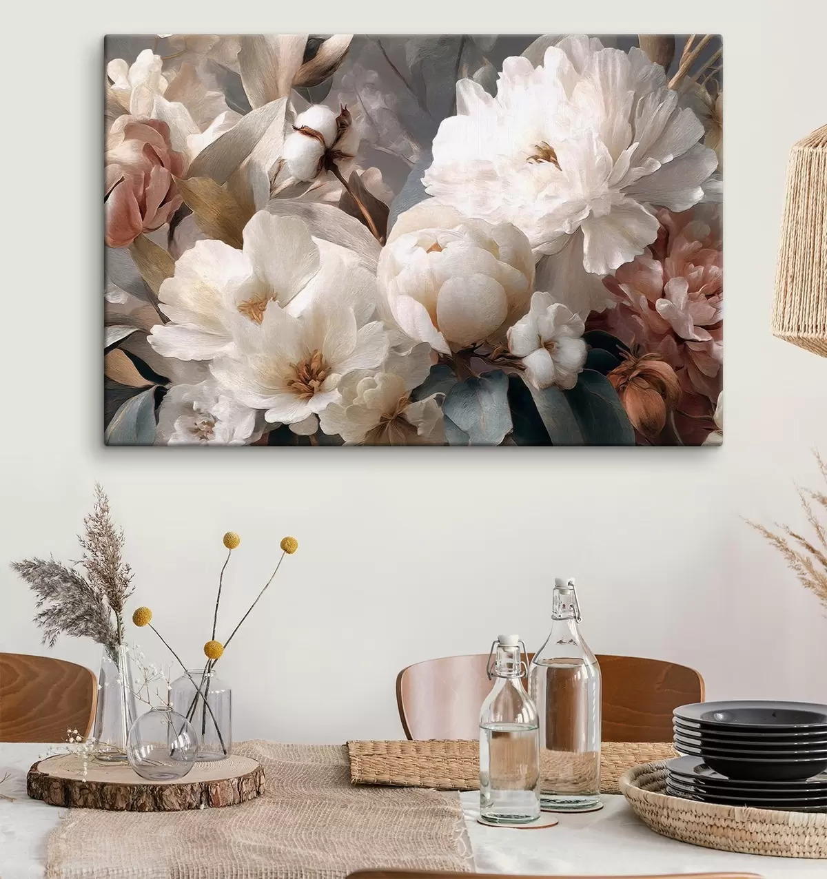 Er zijn drie soorten materiaal te bestellen: Economic Canvas - een dicht en duurzaam materiaal voor digitaal printen, identiek aan schildersdoek, waterdicht oppervlak, realistische weergave van details, materiaal met gemiddelde korrel. Premium Canvas - de textuur lijkt op die van schildersdoek (verweven kleine draden). Zachte, gedetailleerde reproductie van de afbeelding op een mat oppervlak. Eco-Premium - hoogwaardige 100% katoenen stof. Dankzij de natuurlijke katoenvezels is het materiaal duurzaam en slijtvast. Uitstekende kleurweergave en detail.